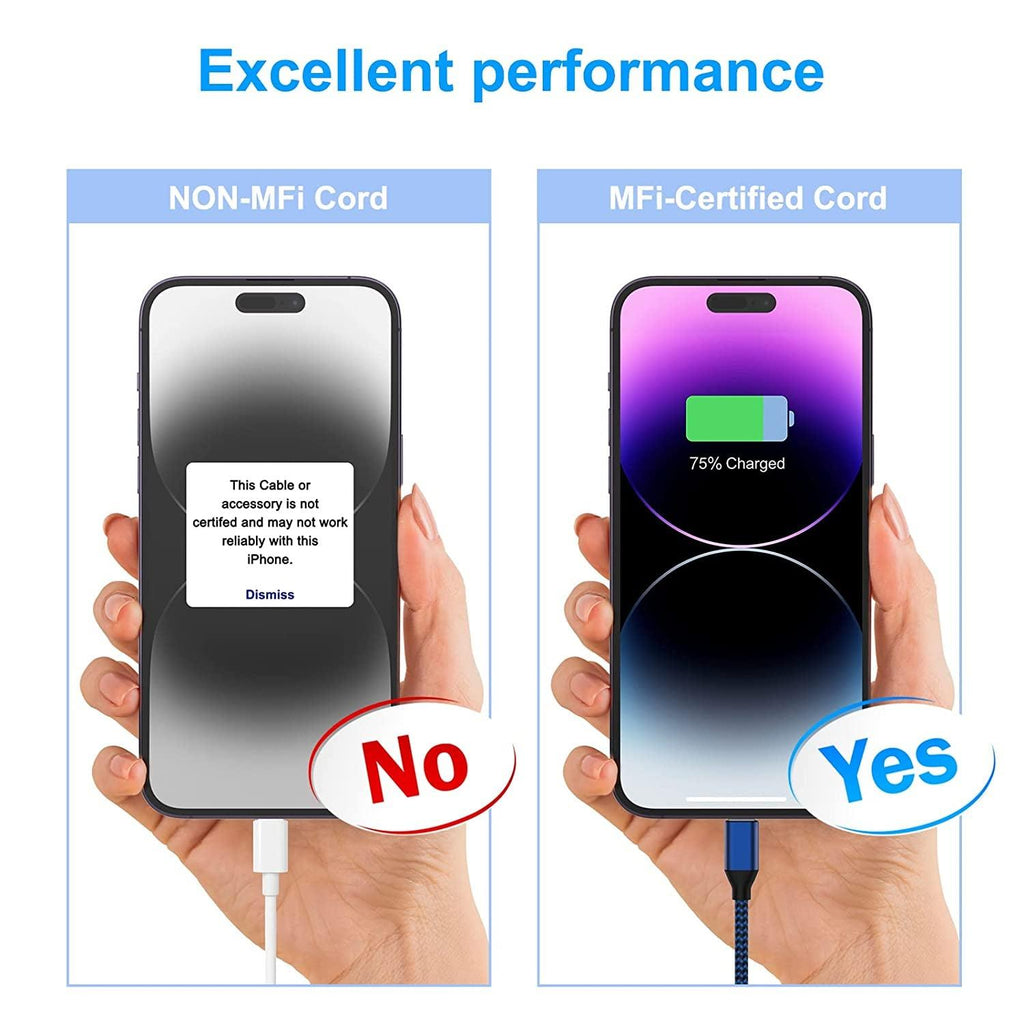 • 【Massive compatibility】iPhone charger compatible with iPhone 14/13/12/11Pro Max/11Pro/11/XS/iPhone Max/iPhone XR/iPhone X/iPhone 8 Plus/iPhone 8/iPhone 7 Plus/iPhone 7/iPhone 6s Plus/iPhone 6s/iPhone 6 Plus/iPhone 6/iPhone 5s/iPhone 5c/iPhone 5/iPad Pro/iPad Air/Air 2/iPad mini/mini 2/mini 4/iPad 4th gen/iPod Touch 5th gen/ iPod.Each lightning cable was updated to match the iphone system.