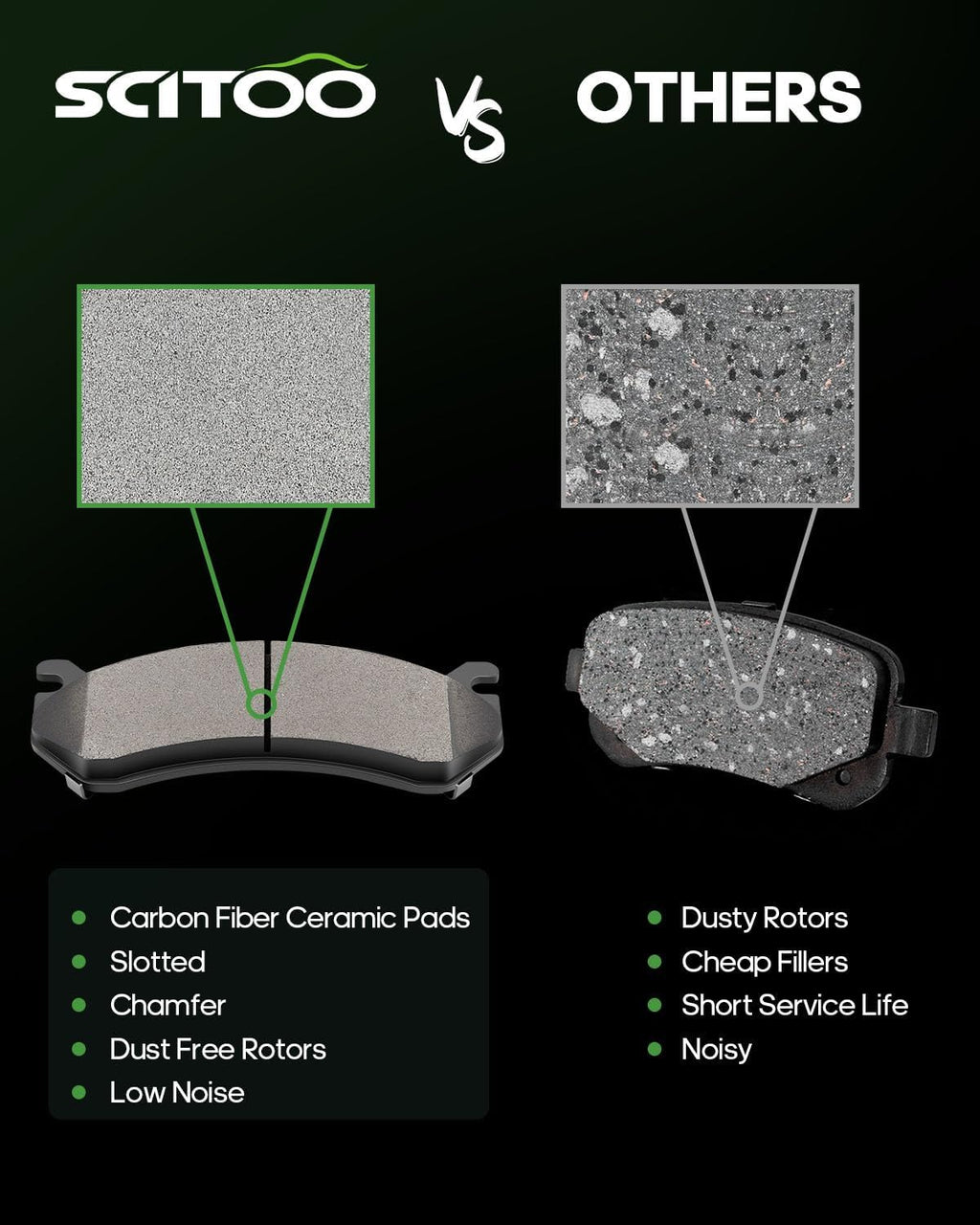 Ceramic Brake Pads Kit,SCITOO 8pcs Disc Brake Pad Set fit for Cadillac Escalade ESV EXT, for Chevy Avalanche Silverado Suburban 1500 Tahoe, 01-06 for GMC Sierra 1500, 00-06 for GMC Yukon/Yukon XL 1500