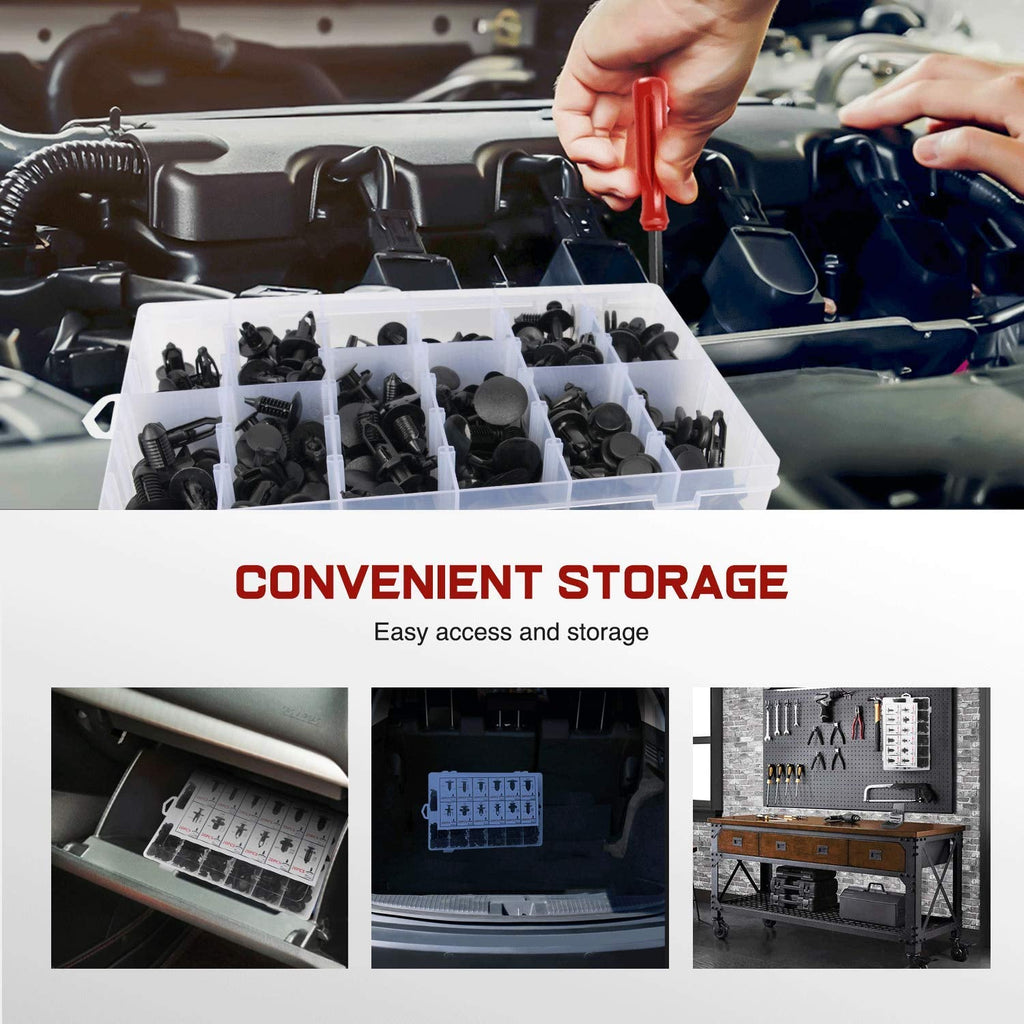 - 【MOST COMMON SIZES】- Don not worry about lost or damaged body fasteners. All the necessary retainers for exact replacement of old and broken retainer.