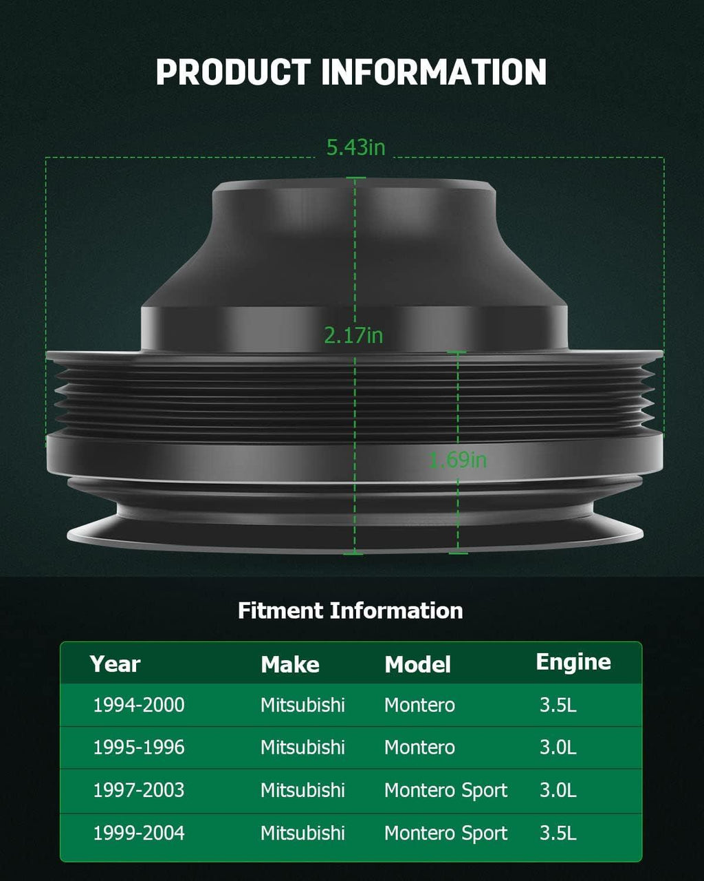- COMPATIABLE VEHICLES - Harmonic Balancer Compatible for 1994 1995 1996 1997 1998 1999 2000 for Mitsubishi Montero 1997 1998 1999 2000 2001 2002 2003 2004 for Mitsubishi Montero Sport