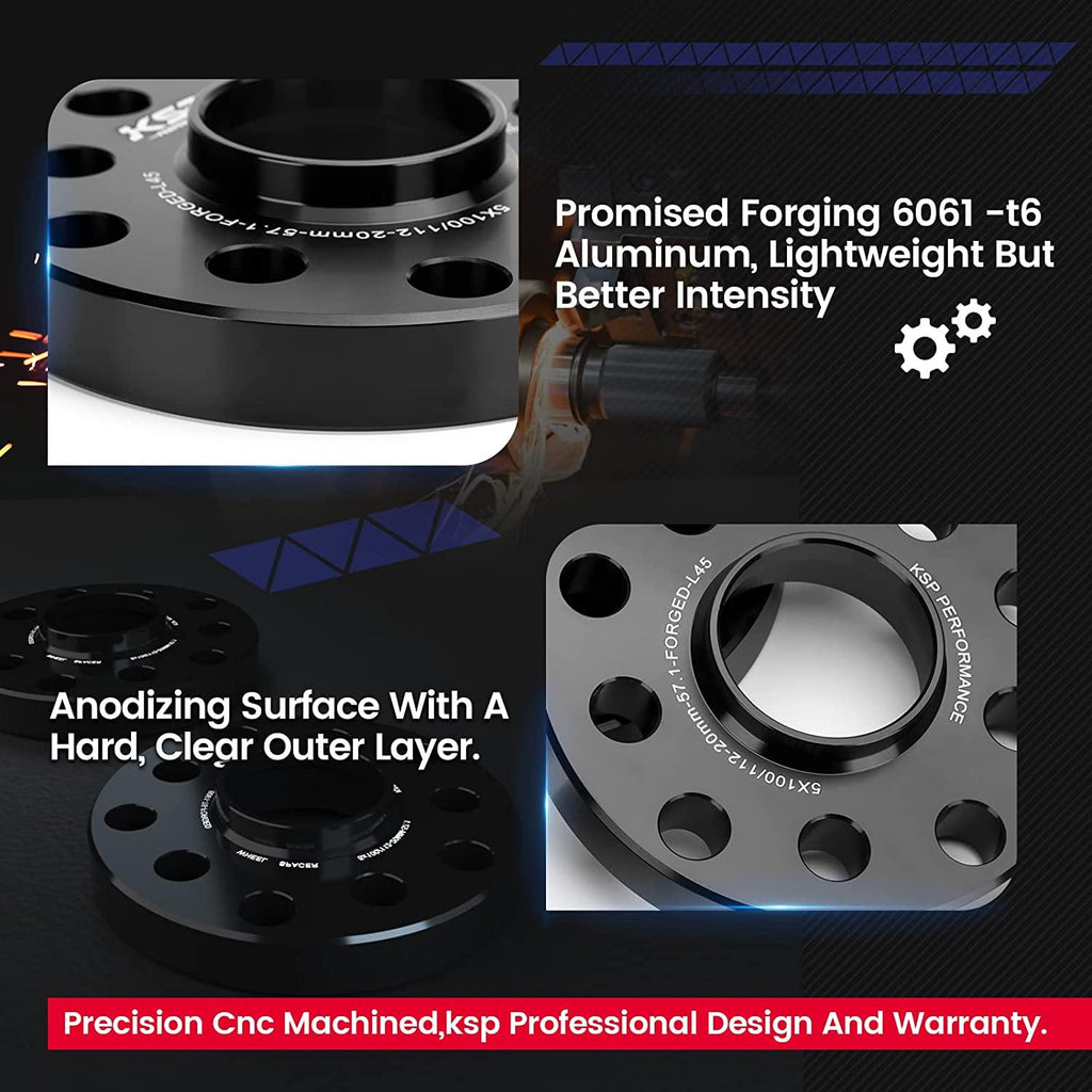 • 【Quality and Safety Assurance】The KSP wheel spacers are REAL FORGED from Lightweight Anodized Black 6061-T6 Aluminum,is stronger and more durable. And they are specifically designed by in-house engineers and cnc machined to exact standards,ensuring the best fitment possible. By carefully measuring the OEM wheel hubs and bore dimensions, these 66.56mm hubcentirc spacers mount with minimal clearance to prevent any vibration, retaining the stock driving.