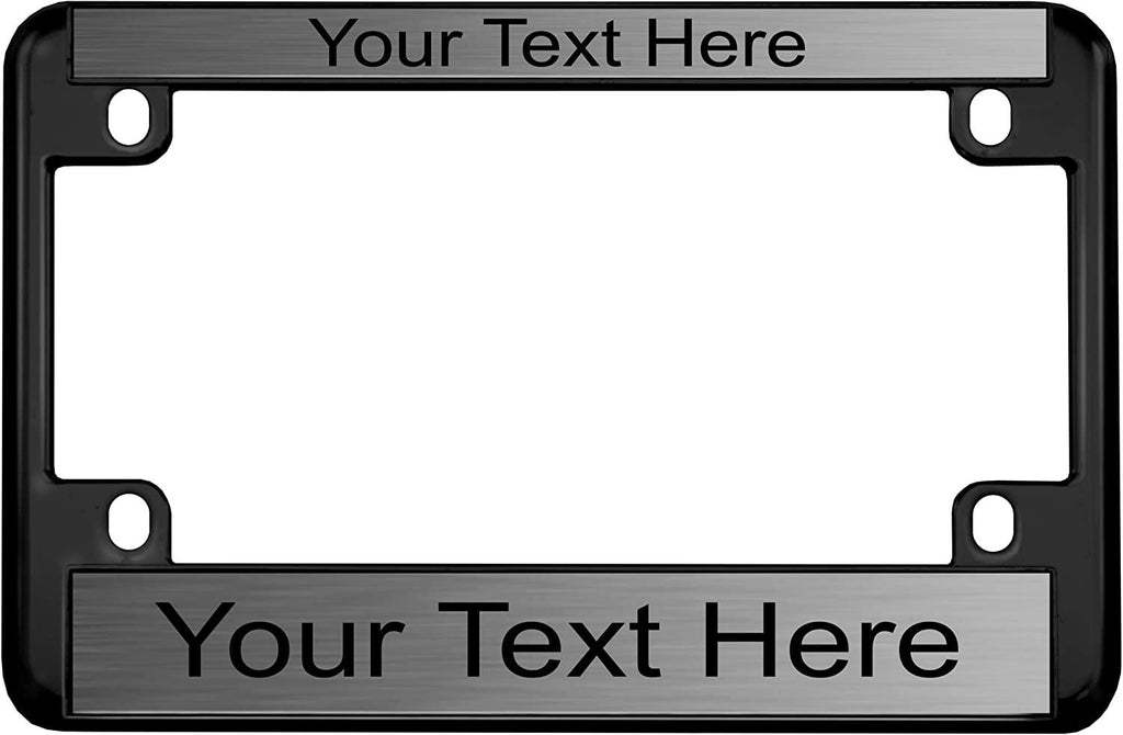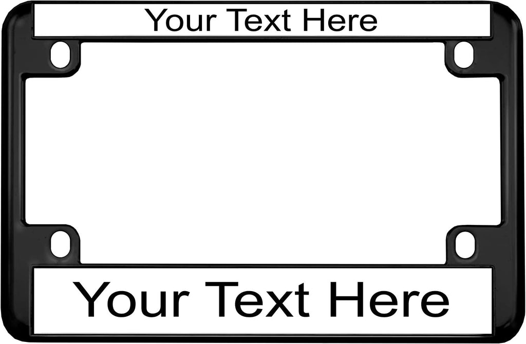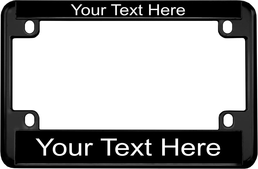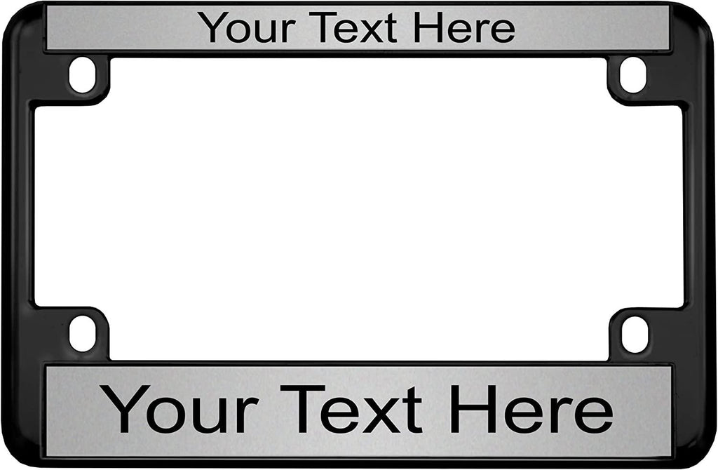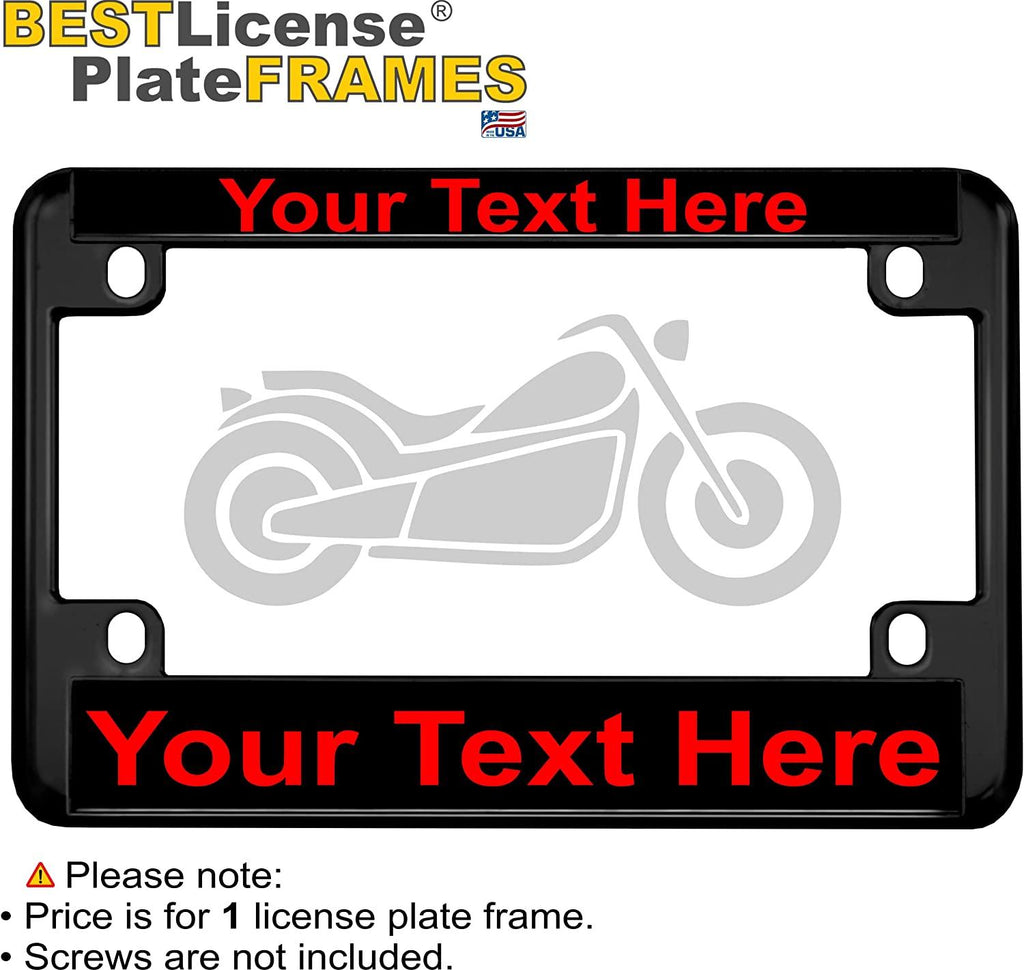 Make sure this fits by entering your model number. PREMIUM QUALITY - Our Best-selling Standard Size - USA Motorcycle Custom Black Metal License Plate Frames are made to fit Standard size 4" x 7" Motorcycle license plates. This Black Metal(Zinc) license plate frame is Very Durable, UV stable and made to last. TECHNOLOGY - Very Durable, High Quality product. Please note: this isn���t a cheap printed sticker, the message of your choice will be laser engraved into UV stable and Weather Resistant outdoor-grade American-made acrylic and then bonded to the frame with an exterior grade oil-resistant 3M adhesive. Your custom frame will not fade, rust or tarnish. USER FRIENDLY ONLINE DESIGNER TOOL - Our Custom Personalized License Plate Frames are easy to design. Click "Customize Now", enter your Top and/or Bottom Text, select preferred Font and click ���Add to cart���. You will receive a Perfect, Unique and One Of A Kind product or gift for any person or occasion. MADE IN THE USA - BestLicensePlateFrames is a small family owned business specializing in custom promotional products in the USA since 2004. Our Personalized License Plate Frames are made by our skilled US employees at our facility in California. Before engraving our technicians will check each frame and make sure that your text is centered and aligned properly to fit into an engravable area. Our customer service is also US based. FAST AND FREE SHIPPING - Our #1 Priority is HIGH QUALITY products & FAST turnaround time. ALL orders ship on the SAME or NEXT Business Day and will be delivered within 3-6 Business Days with FREE First-Class USPS shipping method. FAST EXPEDITED 2-3 Business Days option is available during checkout at additional cost. PACKAGE DETAILS - NO Hardware are included.