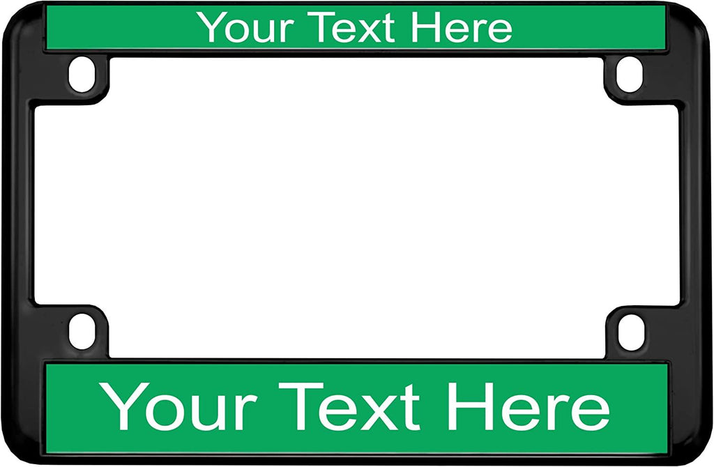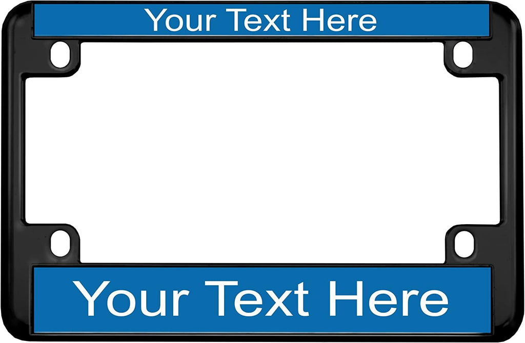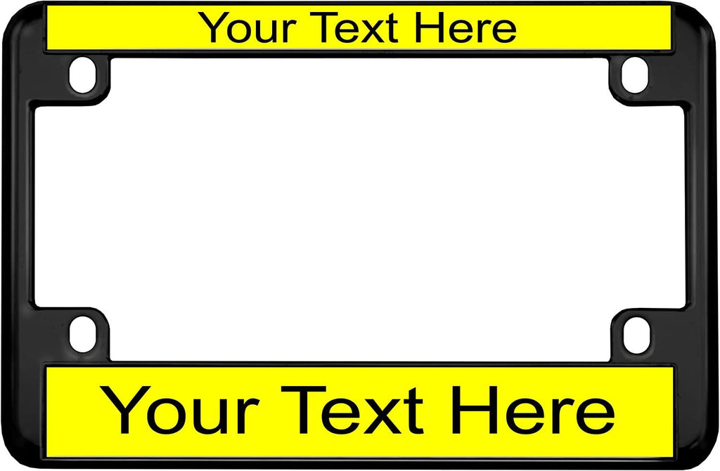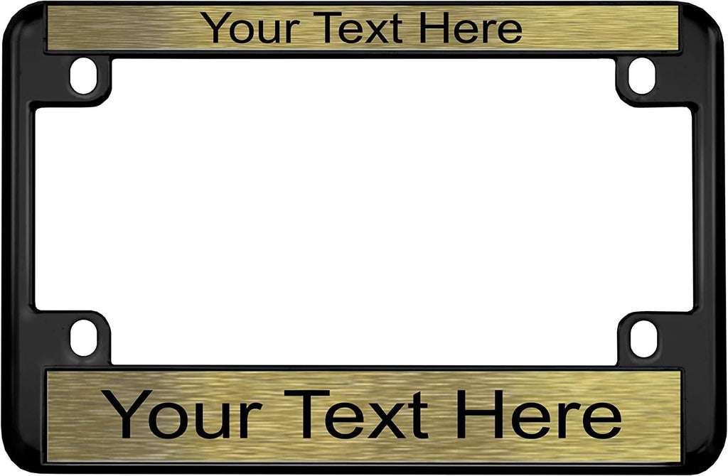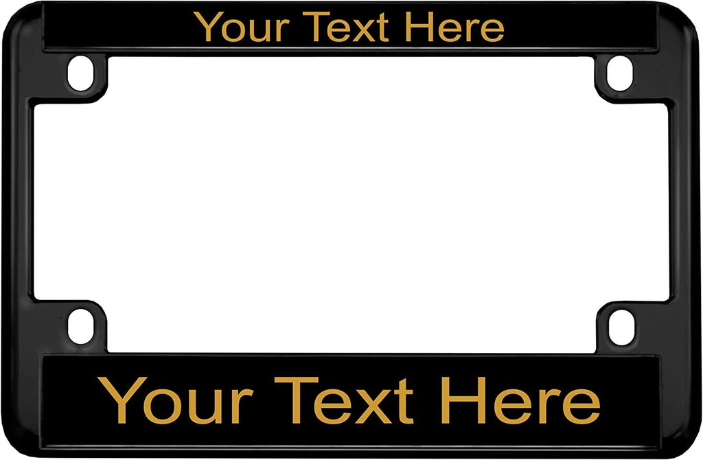 Make sure this fits by entering your model number. PREMIUM QUALITY - Our Best-selling Standard Size - USA Motorcycle Custom Black Metal License Plate Frames are made to fit Standard size 4" x 7" Motorcycle license plates. This Black Metal(Zinc) license plate frame is Very Durable, UV stable and made to last. TECHNOLOGY - Very Durable, High Quality product. Please note: this isn���t a cheap printed sticker, the message of your choice will be laser engraved into UV stable and Weather Resistant outdoor-grade American-made acrylic and then bonded to the frame with an exterior grade oil-resistant 3M adhesive. Your custom frame will not fade, rust or tarnish. USER FRIENDLY ONLINE DESIGNER TOOL - Our Custom Personalized License Plate Frames are easy to design. Click "Customize Now", enter your Top and/or Bottom Text, select preferred Font and click ���Add to cart���. You will receive a Perfect, Unique and One Of A Kind product or gift for any person or occasion. MADE IN THE USA - BestLicensePlateFrames is a small family owned business specializing in custom promotional products in the USA since 2004. Our Personalized License Plate Frames are made by our skilled US employees at our facility in California. Before engraving our technicians will check each frame and make sure that your text is centered and aligned properly to fit into an engravable area. Our customer service is also US based. FAST AND FREE SHIPPING - Our #1 Priority is HIGH QUALITY products & FAST turnaround time. ALL orders ship on the SAME or NEXT Business Day and will be delivered within 3-6 Business Days with FREE First-Class USPS shipping method. FAST EXPEDITED 2-3 Business Days option is available during checkout at additional cost. PACKAGE DETAILS - NO Hardware are included.