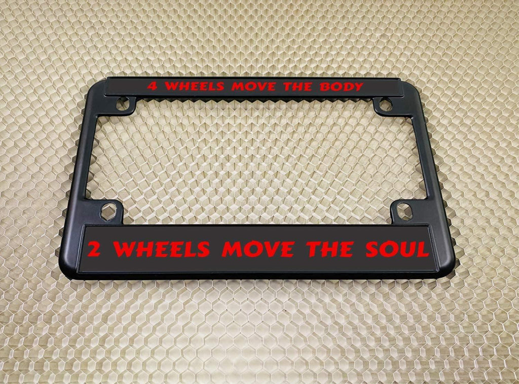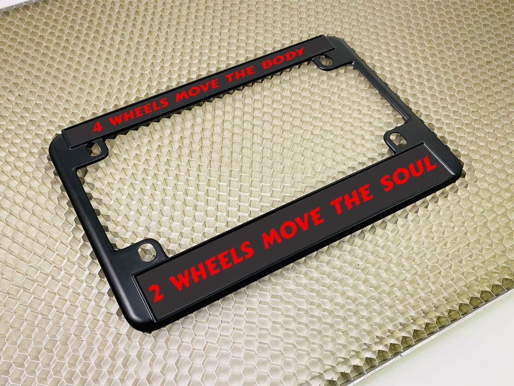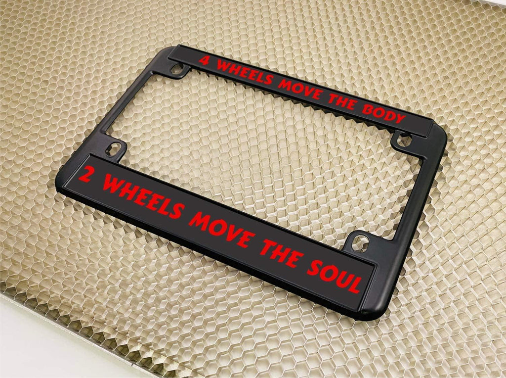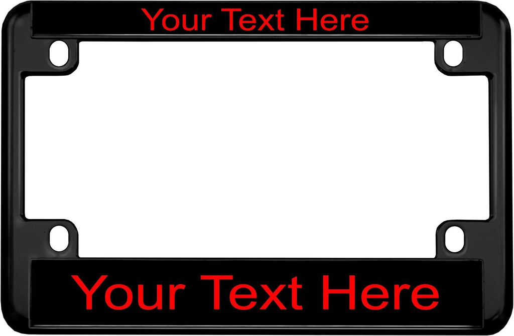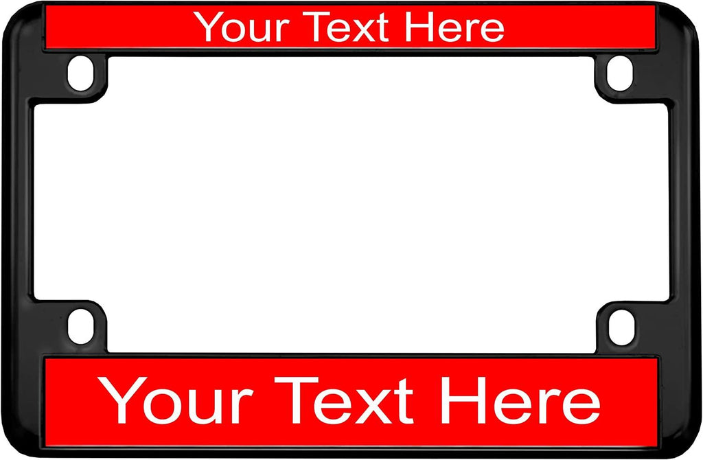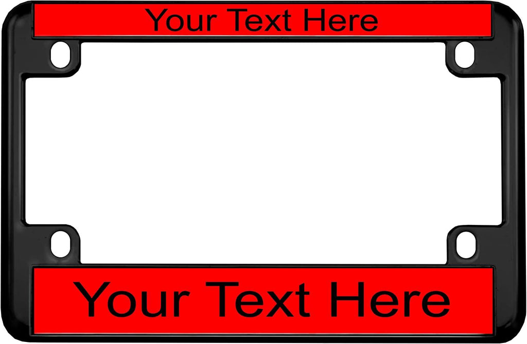 Motorcycle Personalized Black Metal Laser Engraved Standard USA Size (4���x 7���) with Custom Text Design - Moto License Plate Frame - Black / Red Text