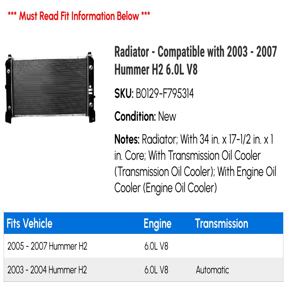 Radiator - Compatible with 2003 - 2007 Hummer H2 6.0L V8 Note: Radiator; With 34 in. x 17-1/2 in. x 1 in....