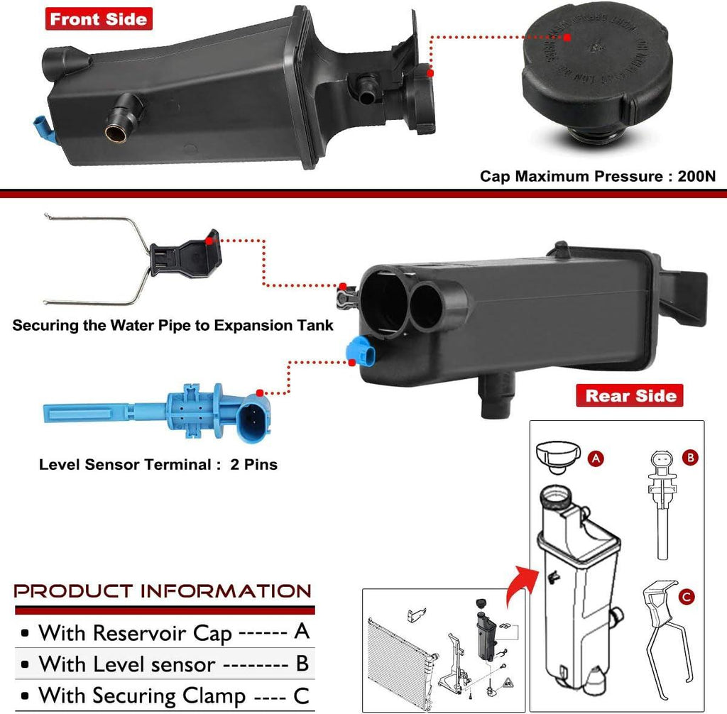 - [Customer Support]: 1 Year Unlimited-mileage Quality Guarantee; With brand-new and being sturdy and, this Coolant Reservoir is the ideal replacement. We extremely value your satisfaction and strive to provide you good shopping experience.