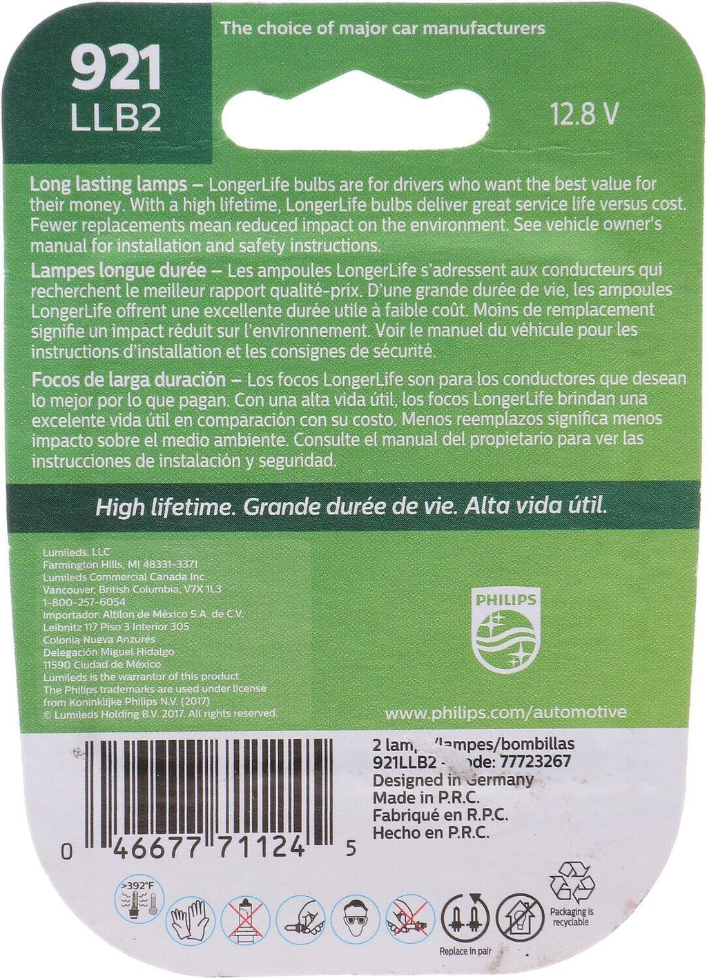 Specifications: Part Category: Fog Light Bulb Brand: Phillips Manufacturer Part Number: 921LLB2 Vehicle Position: N/A Placement on Vehicle: N/A Label: LongerLife - Twin Blister Pack Product Type: Factory Replacement Type: Fog Light Bulb Voltage: 12 Filament Quantity: 1 Bulb Color: Clear Push or Twist Type: Push type Contact Quantity: 2 Wattage: 16 Bulb Base Type: W2,1x9,5d Filament Type: C-2r Length: 1.49 Interchange Part Number: 30103 BP921LL Brand Label: LongerLife - Twin Blister Pack Important Information: