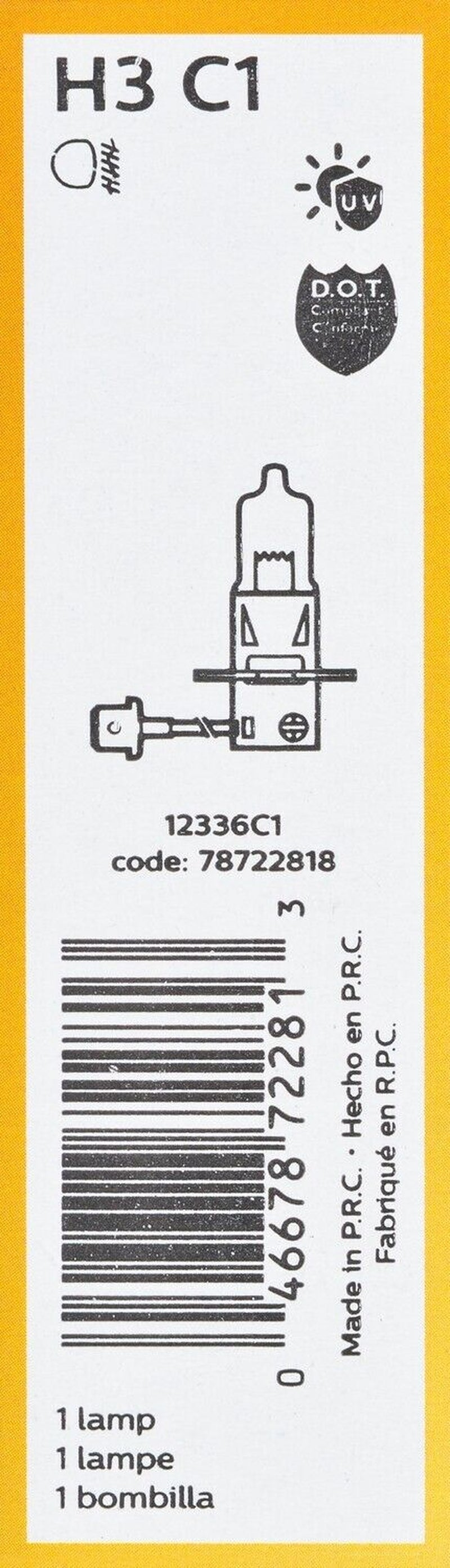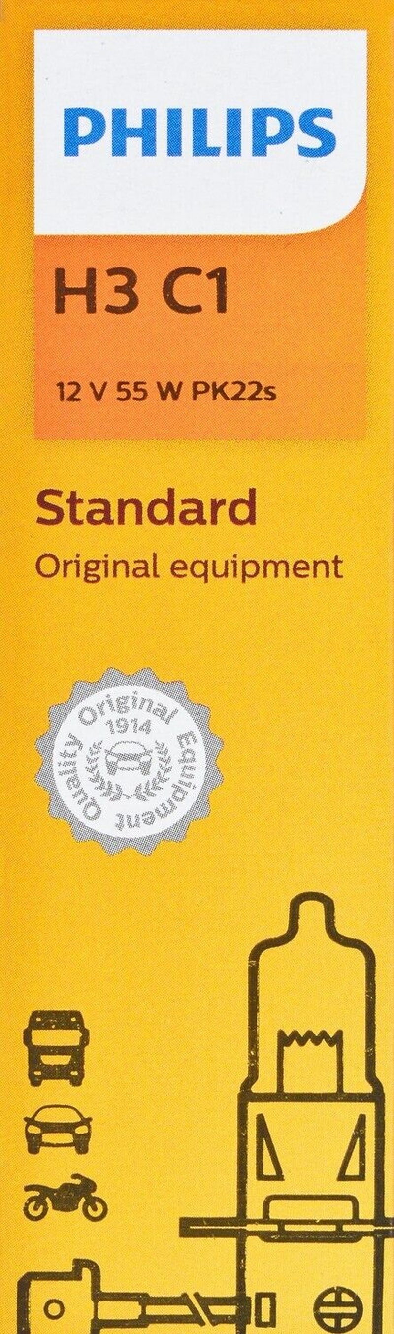 Specifications: Part Category: Fog Light Bulb Brand: Phillips Manufacturer Part Number: H3C1 Vehicle Position: N/A Placement on Vehicle: N/A Label: Standard - Single Commercial Pack Product Type: Factory Replacement Type: Fog Light Bulb Voltage: 12 Filament Quantity: 1 Bulb Color: Clear Push or Twist Type: Push type Contact Quantity: 2 Universal Or Specific Fit: Specific Bulb Diameter: 0.49 Wattage: 55 Interchange Part Number: 27331 Brand Label: Standard - Single Commercial Pack Important Information: