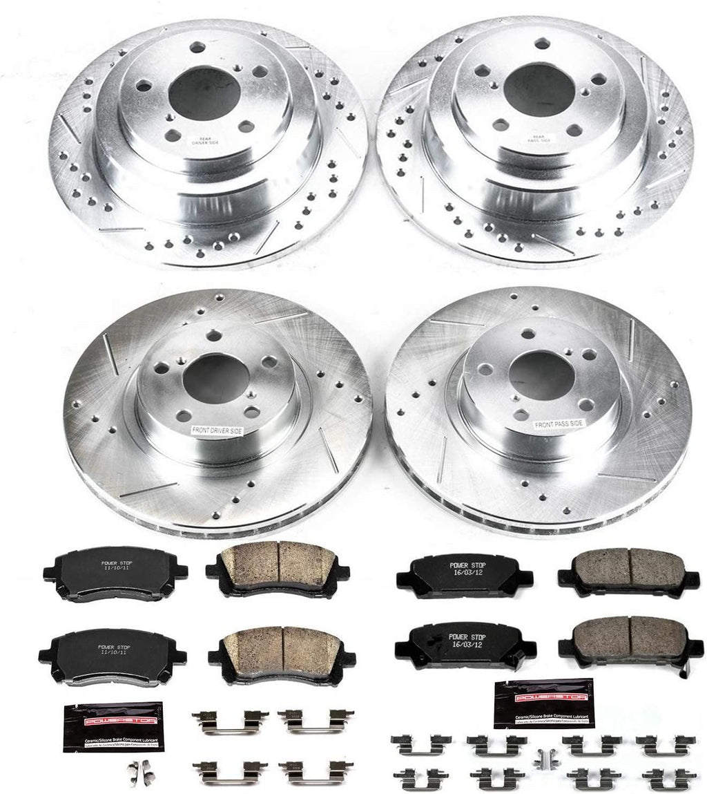 Power Stop Z23 Evolution Sport Brake Upgrade Kit makes it simple to increase the braking power of your daily-driver. This Power Stop kit is engineered to provide a low dust & noise-free upgrade over your stock brake system. The Power Stop Z23 brake upgrade kit makes it simple to complete your brake job by including everything you need: perfectly matched drilled & slotted rotors, Z23 Evolution Sport carbon-fiber ceramic brake pads, upgraded hardware, and high performance lubricant. The low-dust ceramic formula brake pads are reinforced with carbon fibers to strengthen the compound. They are dust free, noise-free, and give you increased braking power without sacrificing everyday drivability. The rotors are cast using the finest G3000 metallurgy with strict OE tolerances - making them a perfect, bolt-on upgrade without the need to make any modifications. Precision drill holes allow for maximum rotor cooling. This keeps your brakes temperatures down during extreme operating conditions. Rounded slots help wipe away any gas or debris - keeping a clear contact patch on the rotor surface for safe, smooth braking. Silver Zinc Dichromate plating is applied to all drilled & slotted rotors, they not only look great behind your wheels, but to help prevent rust & corrosion. Get your Power Stop’s Z23 Evolution Sport brake kit and enjoy better, noise-free braking without that nasty brake dust!