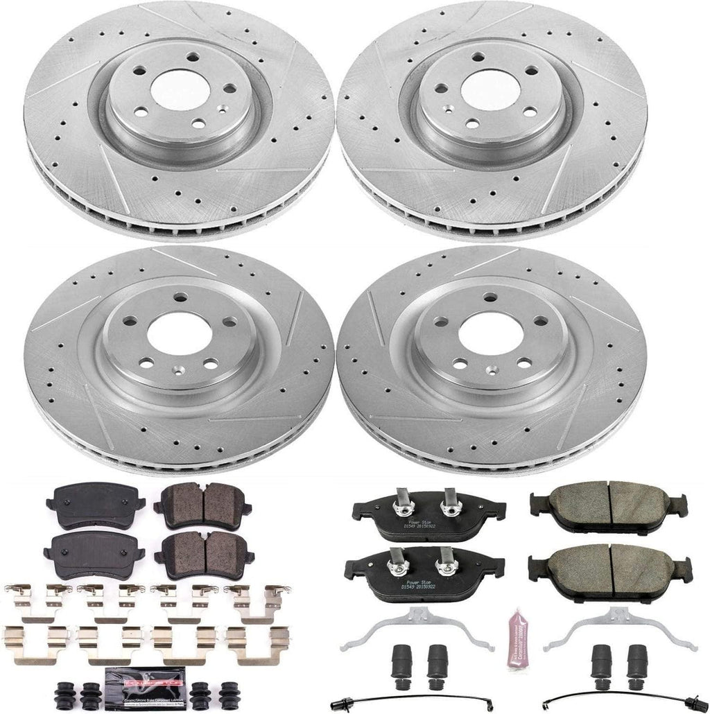 Power Stop Z23 Evolution Sport Brake upgrade kit makes it simple to increase the braking power of your daily-driver. This Power Stop kit is engineered to provide a low dust & noise-free upgrade over your stock brake system. The Power Stop Z23 brake upgrade kit makes it simple to complete your brake job by including everything you need: perfectly matched Drilled & Slotted rotors, Z23 Evolution Sport Carbon-Fiber ceramic Brake Pads, upgraded hardware, and high-performance lubricant. The Low-Dust ceramic Formula Brake Pads are reinforced with carbon fibers to strengthen the compound. They are dust free, nose-free, and give you increased braking power without sacrificing everyday drivability. The rotors are cast using the finest G3000 metallurgy with strict OE tolerances - making them a perfect, bolt-on upgrade without the need to make any modifications. Precision drill holes allow for maximum rotor cooling. This keeps your brakes temperatures down during extreme operating conditions. Rounded slots help wipe away any gas or debris - keeping a clear contact patch on the rotor surface for safe, smooth braking. Silver zinc dichromate plating is applied to all drilled & Slotted rotors, they not only look great behind your wheels, but to help prevent rust & corrosion. Get your Power Stop Z23 Evolution Sport Brake kit and enjoy better, noise-free braking without that nasty Brake dust!
