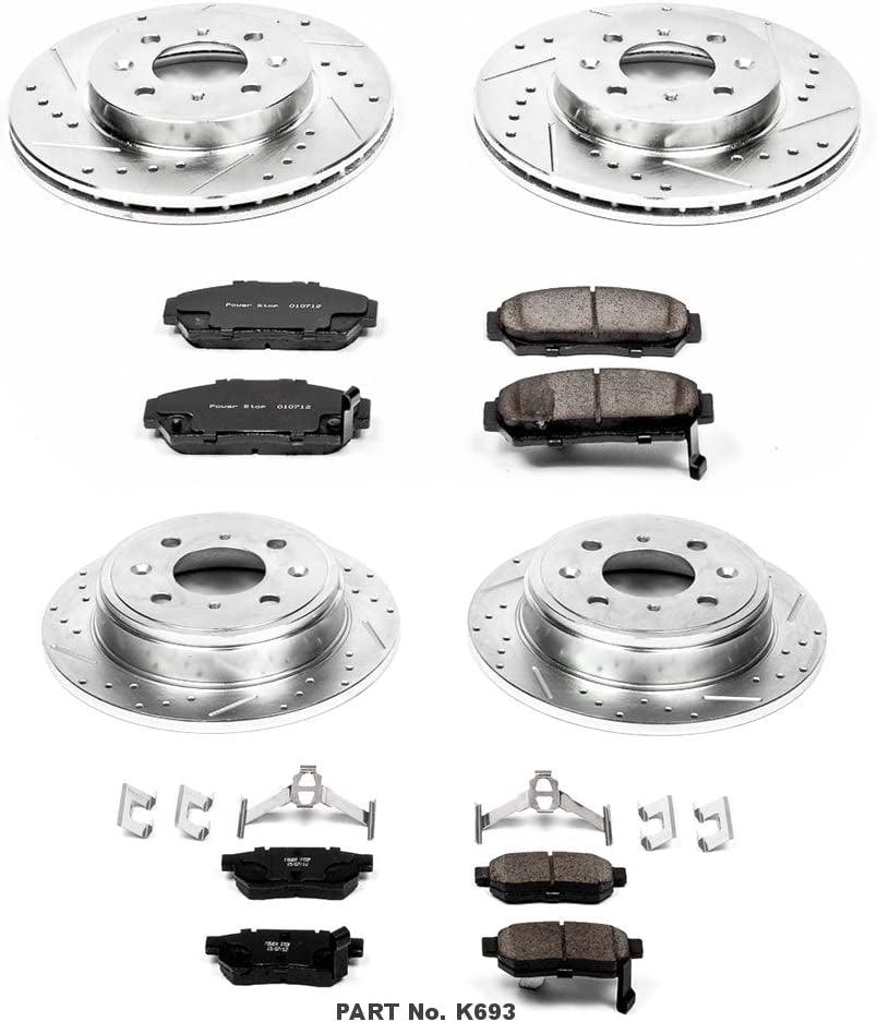 Power Stop K693 Front and Rear Z23 Carbon Fiber Brake Pads with Drilled & Slotted Brake Rotors Kit