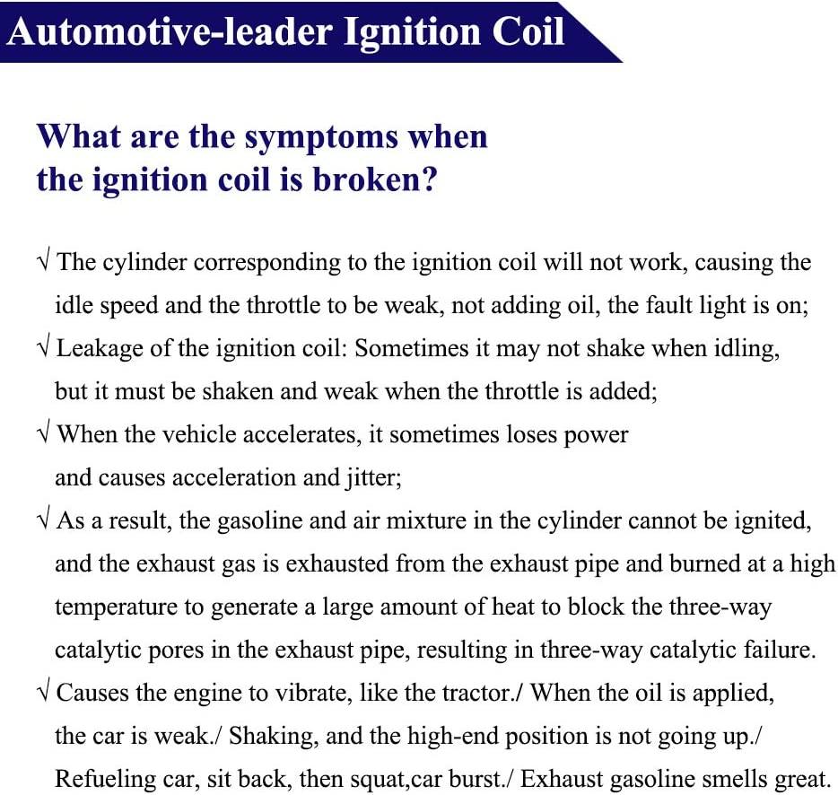 Make sure this fits by entering your model number. ���Warranty���2 Years.Heated. (100% Brand New High Quality Aftermarket Ignition Coil) ���Feature���3-Pin Count. 90 Degree Tan Plug. Product Appearance is Red Color. ���Easy Installation���Direct plug-in replacement. Convenience to use. Stable Performance. Meet the professional specification as OEM standard. ���Interchange Part Number���BL3Z-12029-C, BL3Z12029C, BL3E-12A375-CA, BL3E-12A375-CC, BL3E-12A375-CB, BL3Z-12029-A, BL3Z-12029-B, DG-548, DG-549, UF-646, XP5863, XP-5863,36-8234, C1814, E1146 ���Service Guaranteed���100% must pass a rigorous professional practice loading test before sale and shipment.The rigorous and meticulous processing process and uses qualified durable materials that are resistant to high temperatures and corrosion.100% satisfaction aftersale services and technical assistance. Please rest assured to purchase.If you have any questions, contact with us, we will reply you in 24 hours and offer the solve way for you.