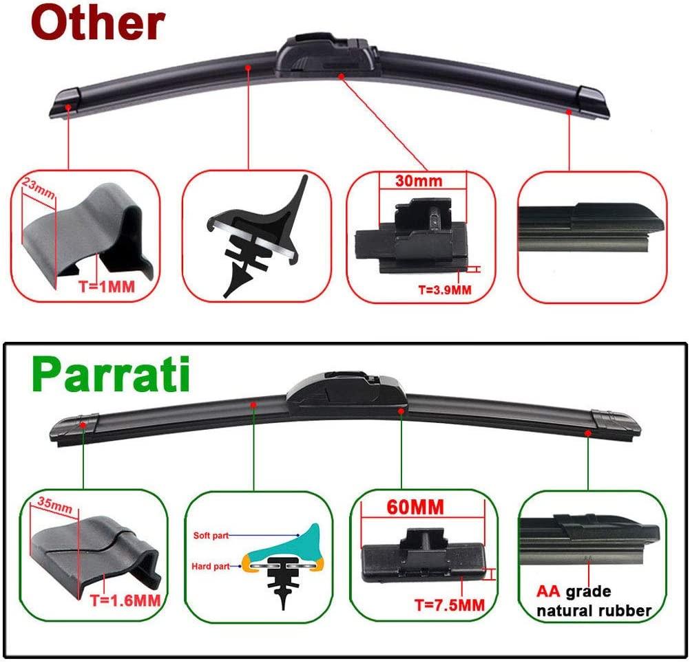 PARRATI�� High Performance Premium All-Season Automotive Windshield Wipers with Rear Wiper Blades , Replacement for 2006-2011 Chevrolet HHR ,Easy to Install 18"+18"+11"(Set of 3)