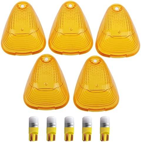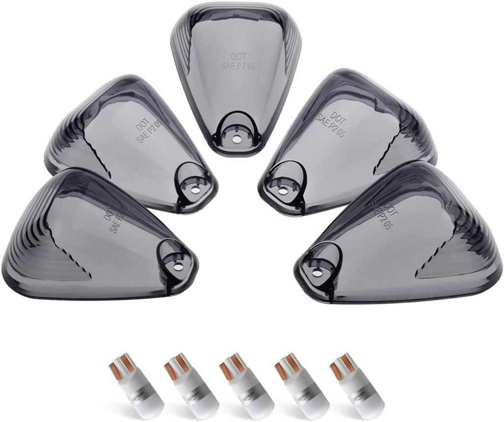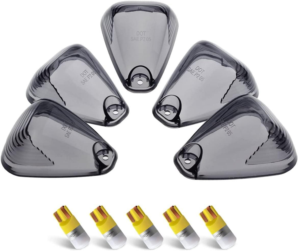 HERCOO Smoke Roof Cab Marker Lights Lens w/LED Bulbs Aftermarket Replacement Compatible with F150 F250 F350 F450 F550 Super Duty (Qty:5