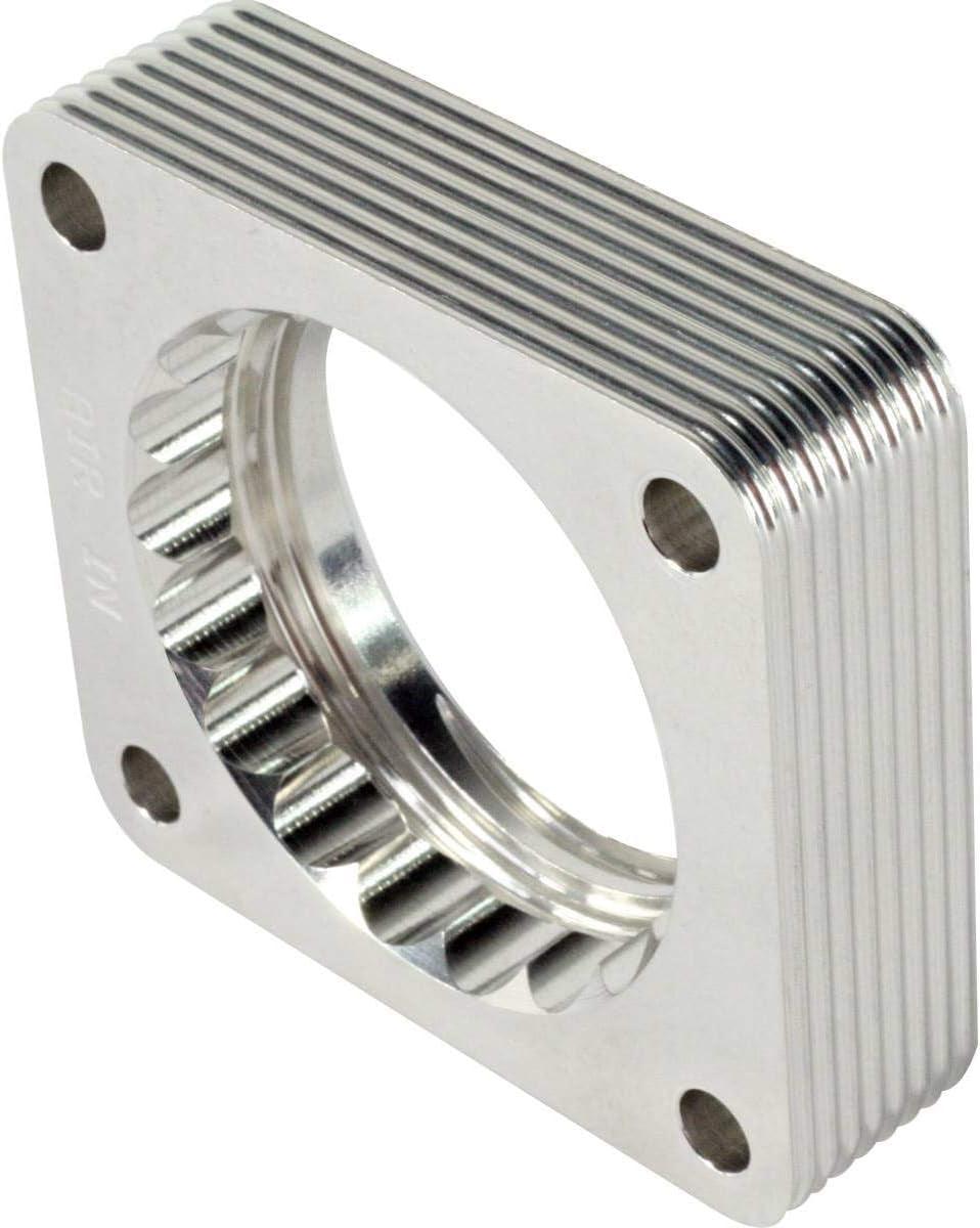 Silver Bullet throttle body spacers create turbulence in the air flow at the point just prior entry into the engine increasing horsepower, torque and improving throttle response and fuel efficiency. Silver Bullet throttle body spacers are constructed out of durable T-6061 billet aluminum and using a unique serrated/helix entry to create turbulence at the manifold while eliminating the annoying whistle found in other helix only throttle spacers. Serrated/Helix Design: The Serrated/Helix combination design creates intake turbulence in the combustion chamber. This turbulence breaks up the fuel which creates a more complete combustion cycle increasing horsepower, torque and improving throttle response. The Serrated/Helix combination design also reduces intake whistle that occurs with other Helix only designs. T-6061 Billet Aluminum Construction: All Silver Bullet Throttle Body Spacers are constructed from T-6061 billet aluminum precision machined for light weight, high strength and perfect fit and finish. Longer Intake Track: Adding a Silver Bullet Throttle Body spacer lengthens the intake track which helps increase intake air speed increasing performance and improved throttle response.