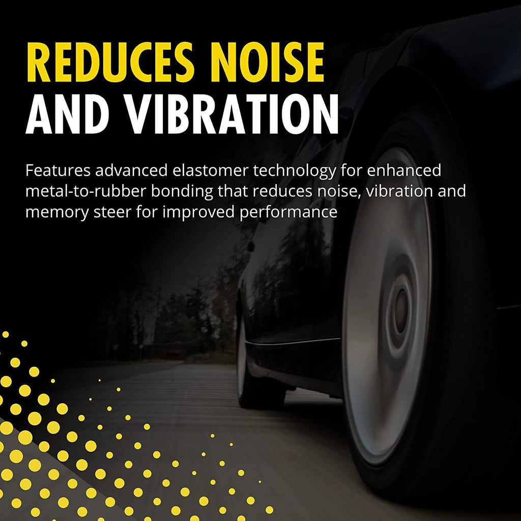 - REDUCES NOISE AND VIBRATION -- Features advanced elastomer technology for enhanced metal-to-rubber bonding that reduces noise, vibration and memory steer for improved performance