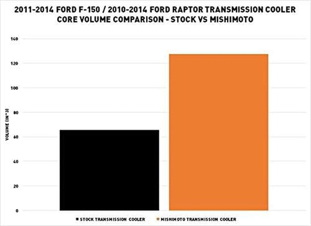 Heavy loads are no match for a 2011-2014 Ford F-150 / 2010-2014 Ford Raptor equipped with a Mishimoto Transmission Cooler. The Ford Raptor is renowned for being incredibly capable for the money. With up to 8,000 lbs of towing capacity, it’s certainly no slouch. But every powertrain has its limits. With the Mishimoto 2011-2014 Ford F-150 / 2010-2014 Raptor transmission cooler, you’ll be able to push those limits knowing that your transmission is protected. Our Mishimoto 2011-2014 Ford F-150 / 2010-2014 Raptor transmission cooler adds significant cooling potential via a 14-row tube-and-fin cooler. Our transmission cooler provides a 93% increase in core volume and 197% greater fluid capacity. Just like all Mishimoto Ford Raptor parts, this 2010-2014 Ford Raptor transmission cooler comes with the Mishimoto Lifetime Warranty.