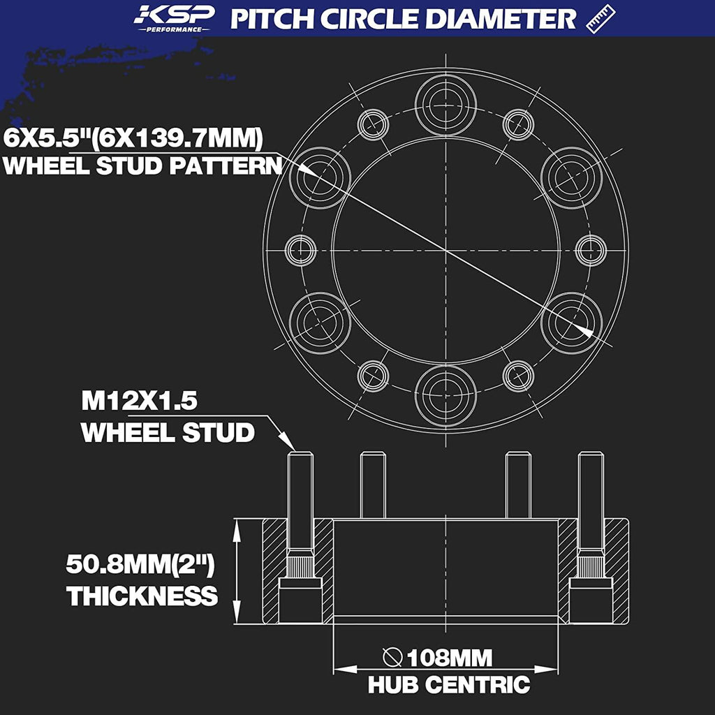 KSP 2in 6x5.5 Tacoma Wheel Spacers, 6x139.7 Tire Spacer fit for Toyota Tundra 4Runner FJ Land Cruiser Sequoia, 50mm Forged Lug Centric Spacer 108mm Hub Bore with M12x1.5 Thread Pitch, Not Hubcentric