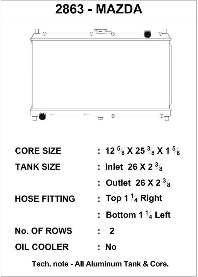 CSF Radiators are made from military grade aluminum to surpass any other radiator on the market for quality and durability. Each radiator undergoes the most testing we've ever seen, with everything from burst pressure to wind tunnel testing, CSF demands the most out of their radiators to ensure they are the best performing and highest quality radiator you can buy. Each radiator is designed to have drop in fitment, and require no modifications for installation. CSF even ensures their packaging is the best. Each package is built to withstand a 10 foot drop to make sure that when you get your radiator, it's flawless. CSF Radiators Feature: Drop-in fit radiator requires no modification for install Designed with OE fitment specifications and mounting TIG welded military grade aluminum"B-Tube" technology offers 15% better heat dissipation than standard O tubes Undergoes leak, thermal cycle, burst, vibration and wind tunnel testing Ideal for any type of racing or daily use"Show Stopper” hand polish mirror finish (222,orig) Vehicle Fitment : 1998 - 2005 NB Mazda Miata