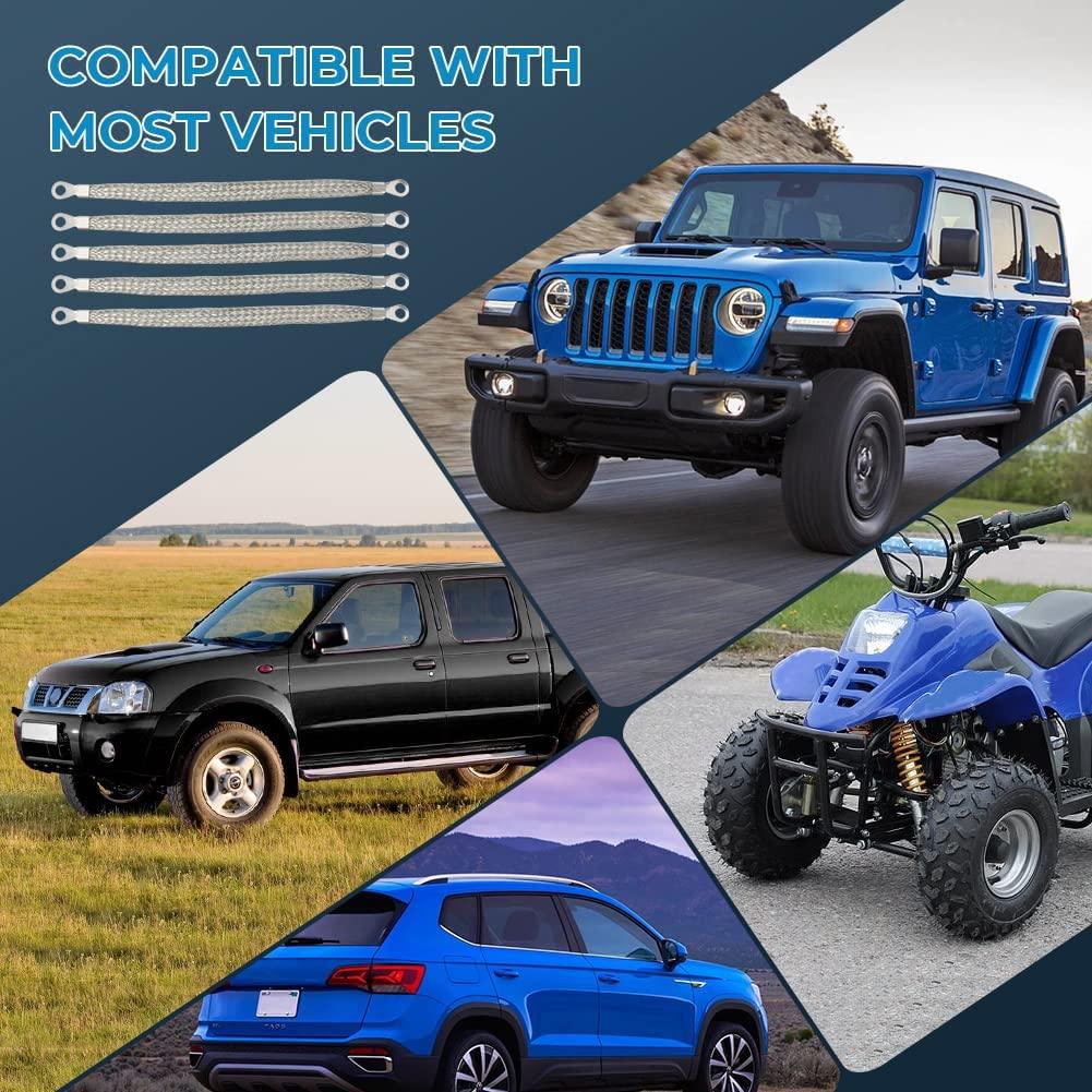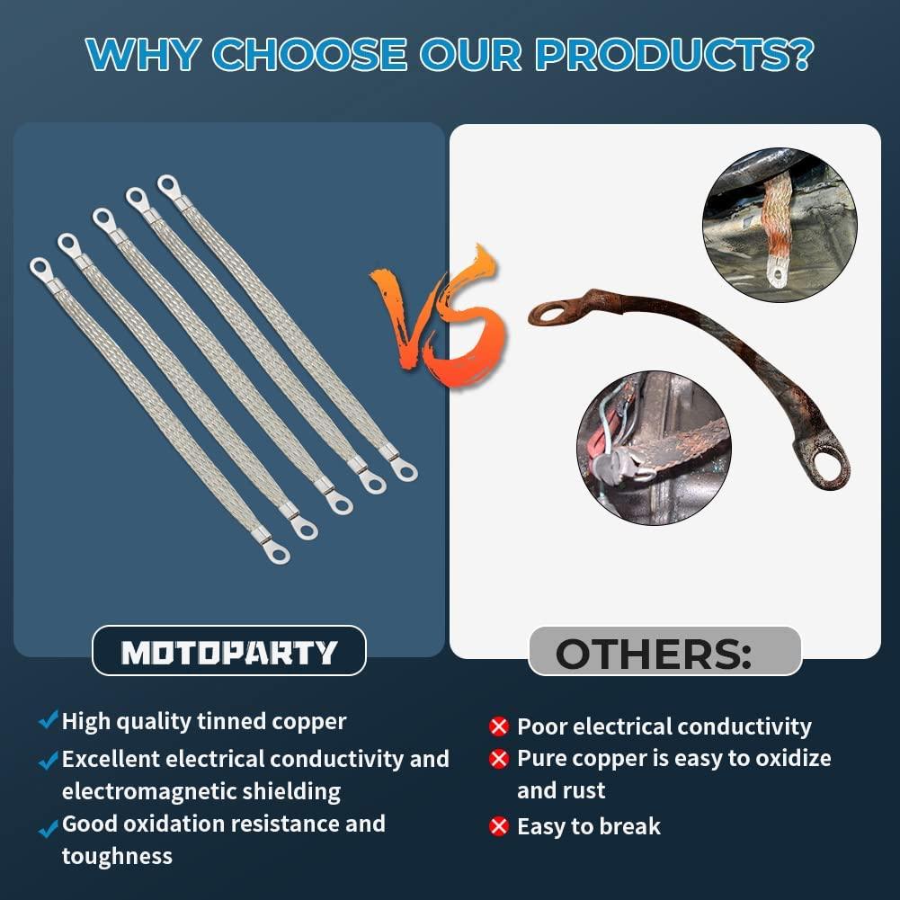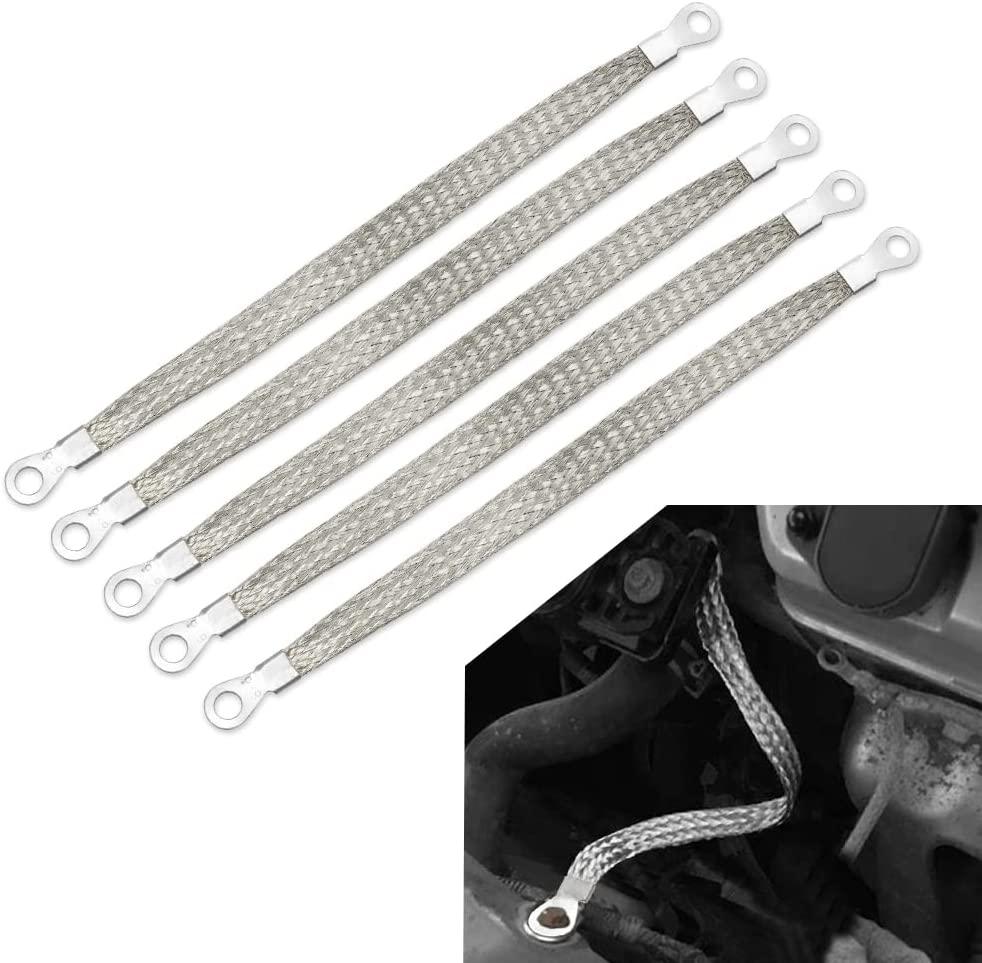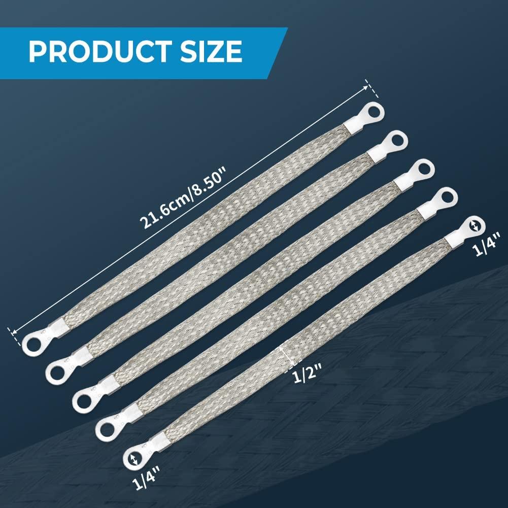 5pcs 8" x 1/2" Braided Ground Straps,Motoparty Tinned Copper ground strap automotive with 1/4" Ring to 1/4" Ring terminal connectors