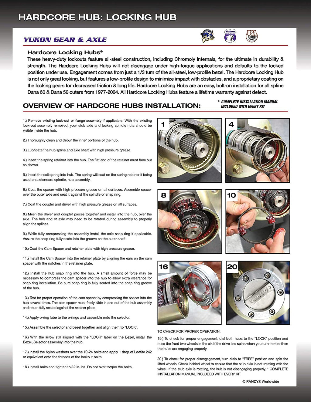All Steel Construction Low Profile Bezel to Reduce Impact with Obstacles Defaults to Locked Position Complete Install Package Yukon Hardcore Locking Hubs...