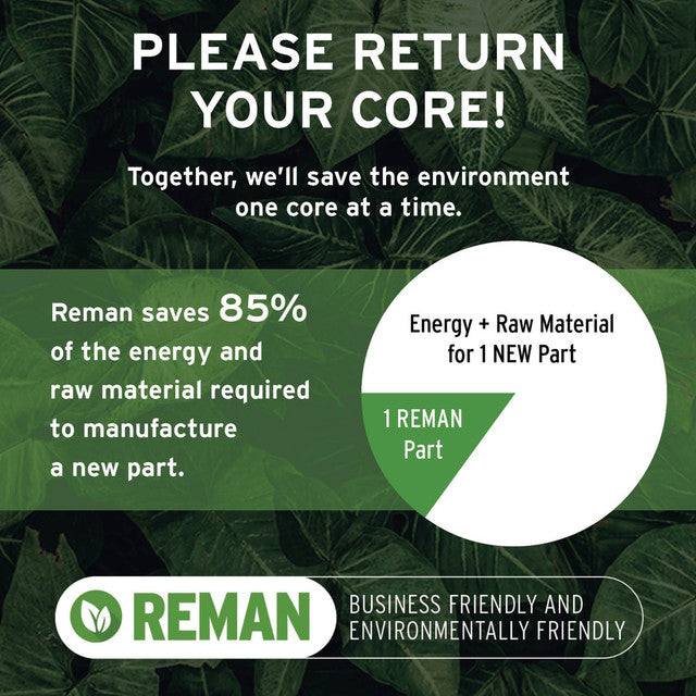 • Our remanufacturing process is earth-friendly, as it reduces the energy and raw material needed to make a new part by 80%.