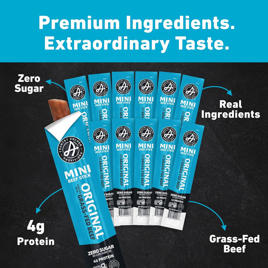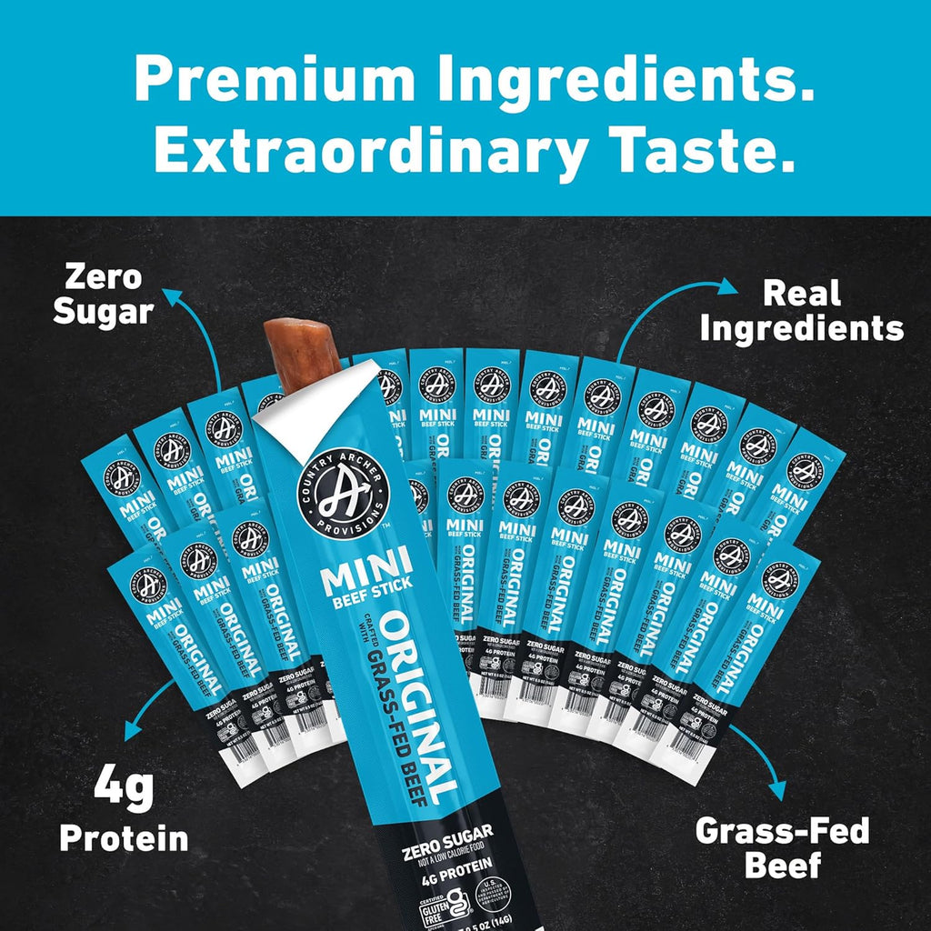 Country Archer Mini Beef Jerky Sticks - Grass Fed Beef Sticks Individually Wrapped, Mini Beef Sticks Bulk, Beef Jerky Snack Packs, Gluten Free, Paleo, Keto - .5 oz Meat Sticks (Pack of 28)