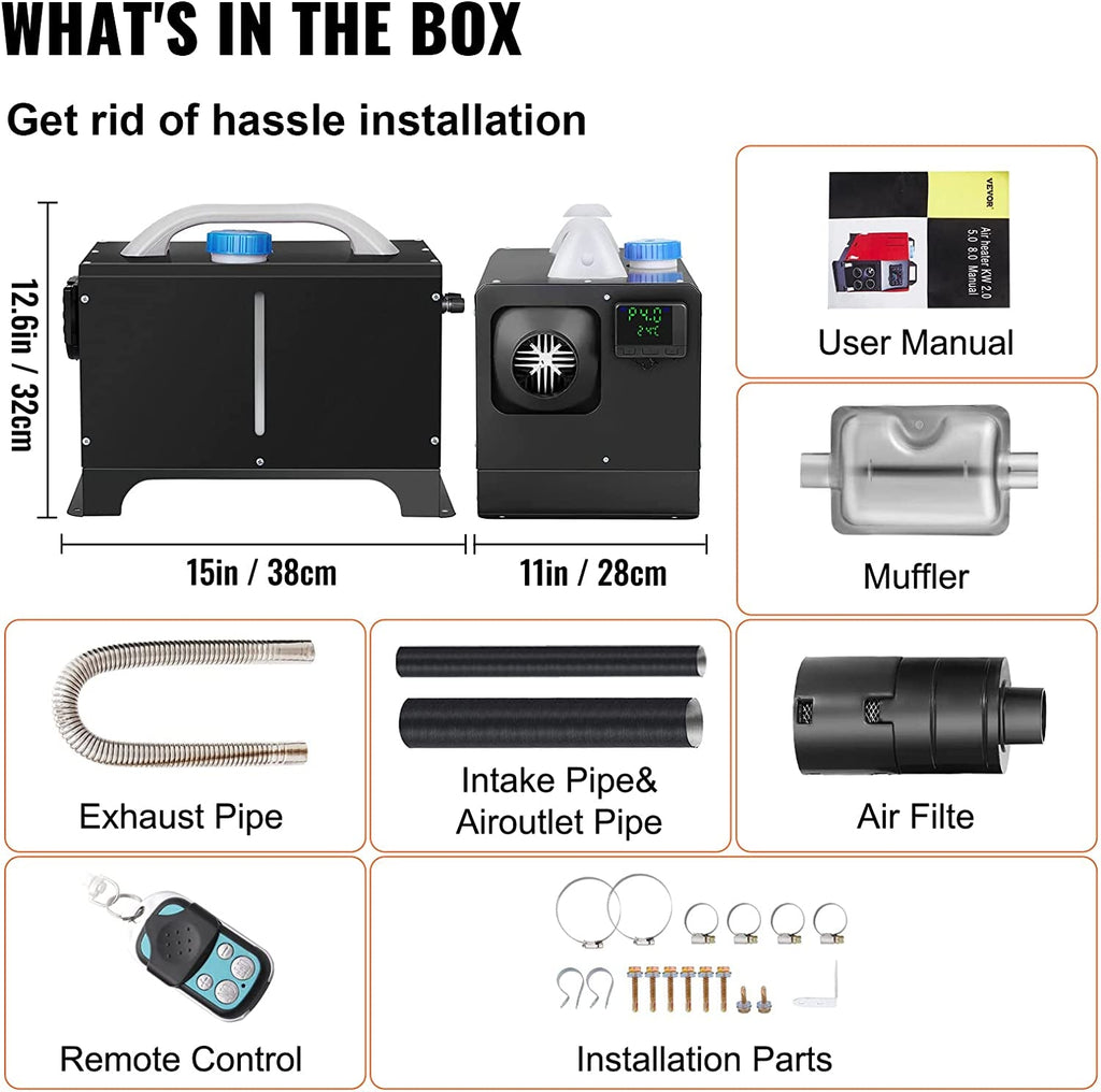 All-in-one Diesel Heater: Heater Power: 8KW; Rated Voltage: 12V; Working Temperature: -40 °C - +80 °C / 40 - 176 ℉. Fuel...