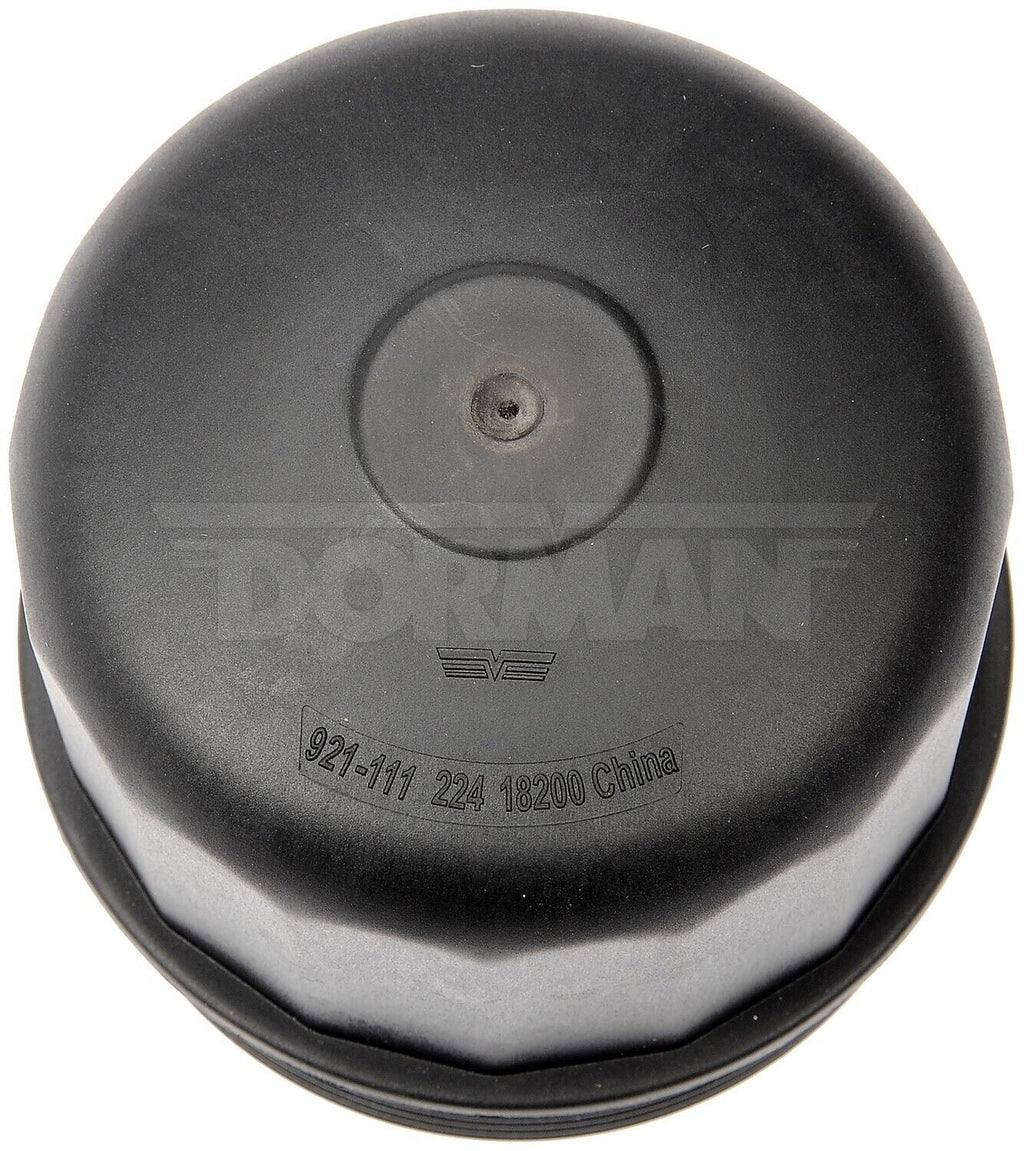 Specifications: Part Category: Engine Oil Filter Cover Brand: Dorman Manufacturer Part Number: 921-111 Vehicle Position: N/A Placement on Vehicle: N/A Product Type: Factory Replacement Type: Engine Oil Filter Cover Number of Pieces: 1 Material: Plastic Diameter: 3.4 Length: 3.4 Color: Black Finish: Smooth Attachment Method: Threaded Mounting Type: Threaded Package Contents: 1 filter cap with o-ring Interchange Part Number: 11427615389 Important Information: