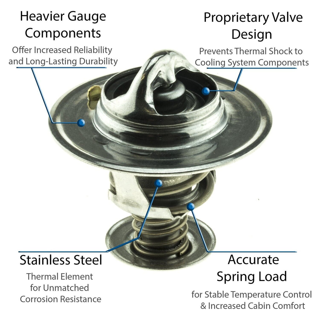 Specifications: Part Category: Engine Coolant Thermostat Brand: Motorad Manufacturer Part Number: 5228-180JV Label: UltraStat Product Type: Factory Replacement Type: Engine Coolant Thermostat Number of Pieces: 1 Sealing Flange Outside Diameter: 2.12 Gasket Or Seal Included: No Jiggle Pin Weep Hole: Yes Bypass Diameter: 1.09 in Bypass Length: 1.37 in Flange Thickness: 0.06 in Installation Tool Included: No Temperature: 180 deg. f Temperature (Degree): 180 Interchange Part Number: 45398 45778 5228-180JV 95228180JV MU55778 PM180JV-8225 Brand Label: UltraStat Important Information: