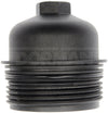 Specifications: Part Category: Engine Oil Filter Cover Brand: Dorman Manufacturer Part Number: 917-493 Vehicle Position: N/A Placement on Vehicle: N/A Product Type: Factory Replacement Type: Engine Oil Filter Cover Number of Pieces: 1 Material: Nylon Color: Black Attachment Method: Thread on Package Contents: 1 oil filter cap Interchange Part Number: 263503CAB1 Important Information: