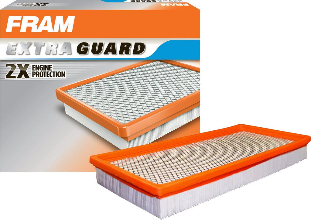 FRAM Extra Guard Air Filters are your first line of defense preventing damaging road dust and dirt particles from entering your engine. Extra Guard Air Filters are engineered with an advanced filter media that lets through 2X less dirt than average leading standard retail brands AND protects your vehicle's engine up to 2 years or 12,000 miles. Replacing a dirty air filter with a new FRAM Extra Guard Air Filter can help increase horsepower, acceleration and overall engine performance. Get better protection with ease and install a new FRAM Extra Guard Air Filter today!
