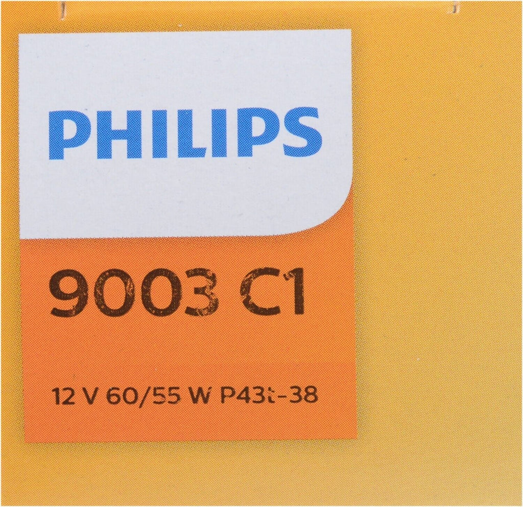 Specifications: Part Category: Fog Light Bulb Brand: Phillips Manufacturer Part Number: 9003C1 Vehicle Position: N/A Placement on Vehicle: N/A Label: Standard - Single Commercial Pack Product Type: Factory Replacement Type: Fog Light Bulb Diameter: 0.65 Halogen: Yes DOT Approved: Yes Filament Quantity: 2 Beam Type: High beam low beam Street Legal: Yes Bulb Color: Clear Bulb Material: Glass Bulb Technology: Halogen Bulb Finish: Clear Amperage Rating: 5/4.58 Bulb Base Type: P43t-38 Bulb Type: Standard capsule Filament Type: C-8 Length: 3.63 Voltage: 12 Wattage: 60/55 Interchange Part Number: 22389 27334 Brand Label: Standard - Single Commercial Pack Important Information: