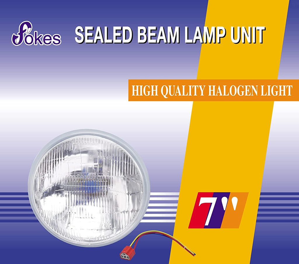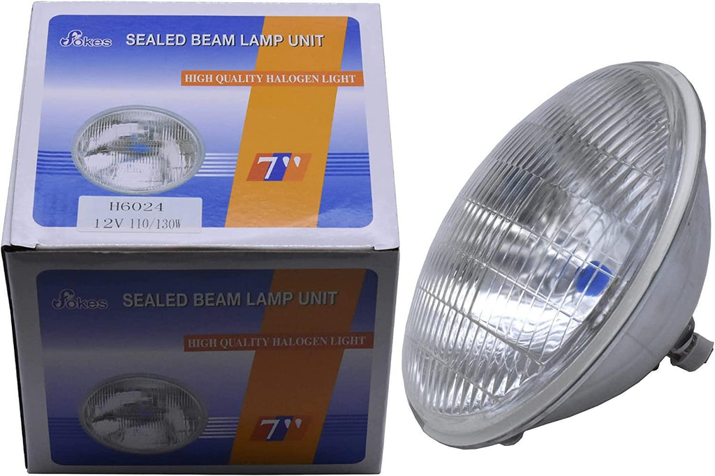 fokes H6024 High Performance Halogen Sealed Beam Headlight��� (7"" Round���178mm) (110/130W), (Contains 1 ceramic headlight plug) #H6024