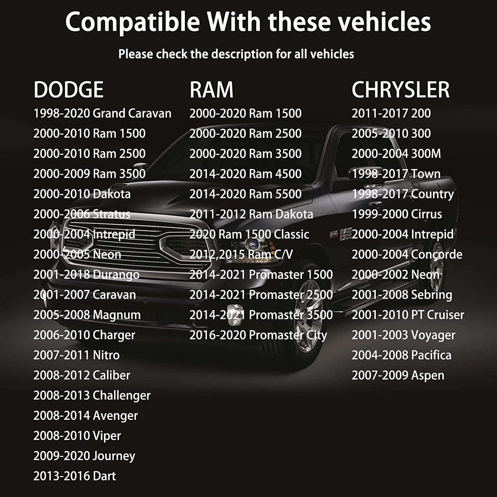 Make sure this fits by entering your model number. ���REPLACEMENT NON LOCKING TETHER GAS CAP / FUEL CAP���52030377AB, 5278632AG, 52030377AA. Gas Cap, Fuel Cap According To The OEM Design And Manufacture, The Damaged Fuel Filler Cap Can Be Replaced Perfectly. Before Ordering, Please Confirm Whether The Accessories Are Suitable For Your Vehicle To Confirm Compatibility��� ���COMPATIBLE WITH CHRYSLER���Gas Cap Compatible With 2011-2017 200 | 2005-2010 300 | 2007-2009 Aspen | 1998-2017 Town & Country | 2004-2008 Pacifica | 2001-2008 Sebring | 2000-2004 Intrepid | 2000-2004 300M | 1999-2000 Cirrus | 2000-2004 Concorde | 2000-2002 Neon | 2001-2010 PT Cruiser | 2001-2003 Voyager ���COMPATIBLE WITH DODGE���Fuel Cap Compatible With 2000-2010 Ram 1500 2500 | 2000-2009 Ram 3500 | 1998-2020 Grand Caravan | 2009-2020 Journey | 2000-2010 Dakota | 2013-2016 Dart | 2001-2018 Durango | 2001-2007 Caravan | 2008-2012 Caliber | 2006-2010 Charger | 2008-2013 Challenger | 2008-2014 Avenger | 2000-2004 Intrepid | 2005-2008 Magnum | 2000-2005 Neon | 2000-2006 Stratus | 2007-2011 Nitro | 2008-2010 Viper ���COMPATIBLE WITH RAM���Fuel Tank Caps Compatible With 2000-2020 Ram 1500 2500 3500 | 2014-2020 Ram 4500 | 2014-2020 Ram 5500 | 2020 Ram 1500 Classic | 2014-2021 Promaster 1500 2500 3500 | 2016-2020 Promaster City | 2011-2012 Ram Dakota | 2012, 2015 Ram C/V ���AFTER-SALES SERVICE���12 Months Warranty, If You Are Not Satisfied With The Fuel Tank Filler Cap, Just Return It Within 30 Days For A Full Refund. Buy With Confidence!