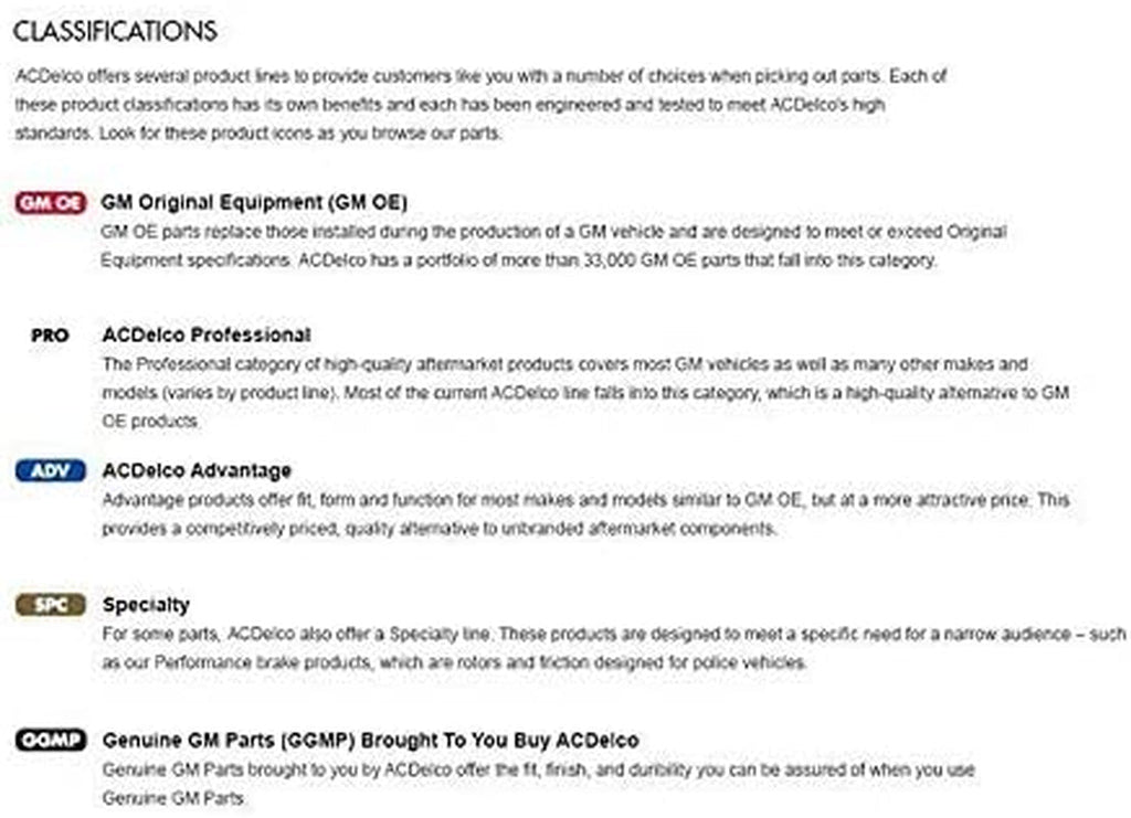 • GM-recommended replacement part for your GM vehicle’s original factory component