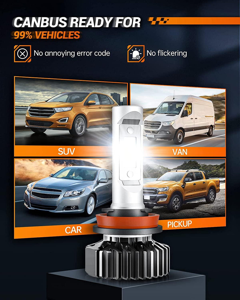 Fits 99% VehiclesSealight X1 LED bulbs need no additional adapters to eliminate flickering in most vehicles | Intelligent Cooling SystemAnodized aluminum heatsink with 360° large-area hollow-carved design increases 200% more cooling efficiency | Robust DesignWith excellent dustproof performance, it can work normally in bad weather with rain, snow and fog to ensure your driving safety |