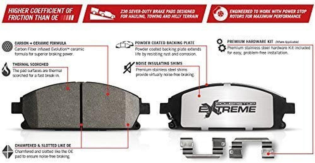 K6803-36 Front and Rear Z36 Truck & Tow Brake Kit, Carbon Fiber Ceramic Brake Pads and Drilled/Slotted Brake Rotors