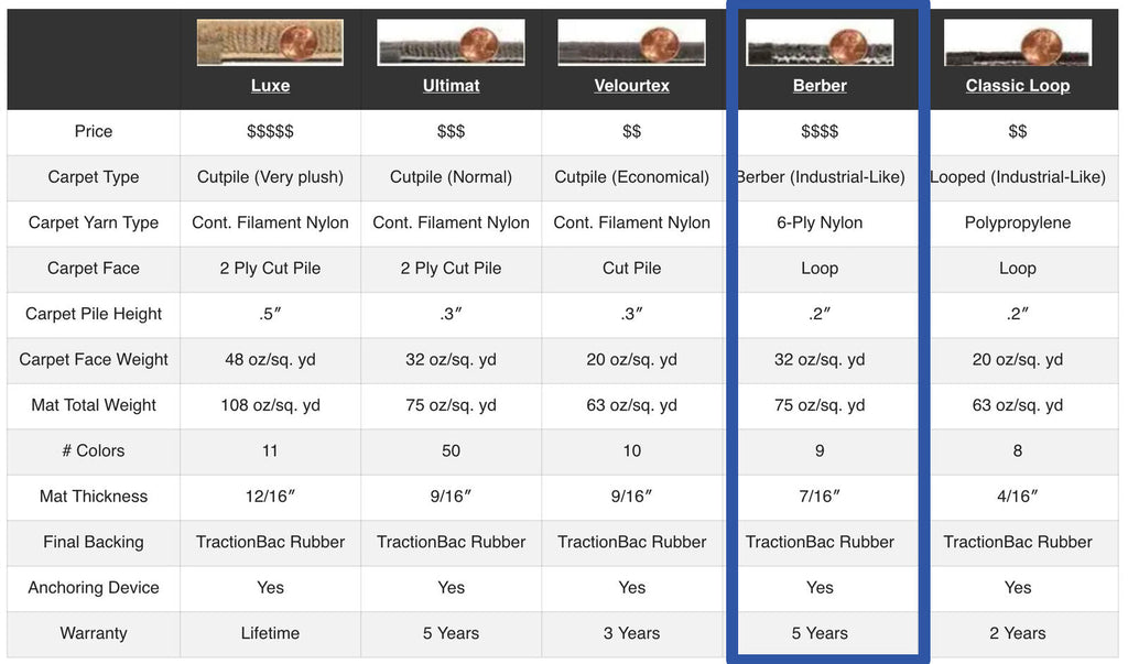 Specifications: Carpet Type: Berber Carpet Yarn Type: 6-Ply Nylon Carpet Face: Plain Carpet Pile Height: .2" Carpet Face Weight: 32 oz/sq. yd Mat Total Weight: 75 oz/sq. yd Mat Thickness: 7/16" Backing Type: TractionBac Rubber Anchoring Device: Yes Manufacturer Warranty: 5 Years Material: Carpet Brand Name: Lloyd Mats Lloyd Line: Berber Features: Anti-Slip Fit Type: Custom Brand: Lloyd Mats 2 Placement on Vehicle: Cargo Placement: Trunk Type: Cargo Mat Color: Black, Tan, Beige, Black Heathered, Gray Heathered, Beige Heather Important Information: VEHICLE FITMENT: All floor mats are custom fit to your exact vehicle. When ordering, be sure to select the correct option in the dropdown box titled "Your Vehicle" to guarantee the correct fit. This is located near the purchase button and is required to select before ordering. If you do not see your vehicle listed in the "Your Vehicle" dropdown box, please search our store or contact us for help locating your fit. RETURN POLICY: We offer a 30 day return policy on new and unused items in original packaging. Please see the Returns section of the listing for full return policy information. Damaged items can only be exchanged once the original shipment is received back. SHIPPING INFORMATION: All Lloyd floor mats are made to order and take 3-4 business days to make before shipping. Floor mats usually ship via UPS Ground, but we may also ship FedEx Ground from time to time. International orders are handled exclusively through the eBay Global Shipping Program. |