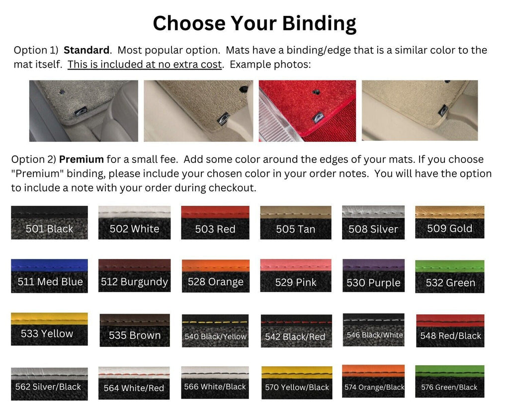 All floor mats are custom fit to your exact vehicle. When ordering, be sure to select the correct option in the dropdown box titled "Your Vehicle" to guarantee the correct fit. This is located near the purchase button and is required to select before ordering. If you do not see your vehicle listed in the "Your Vehicle" dropdown box, please search our store or contact us for help locating your fit.