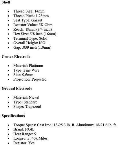 Brand: NGKCore Material: PlatinumTop Material Type: Metal