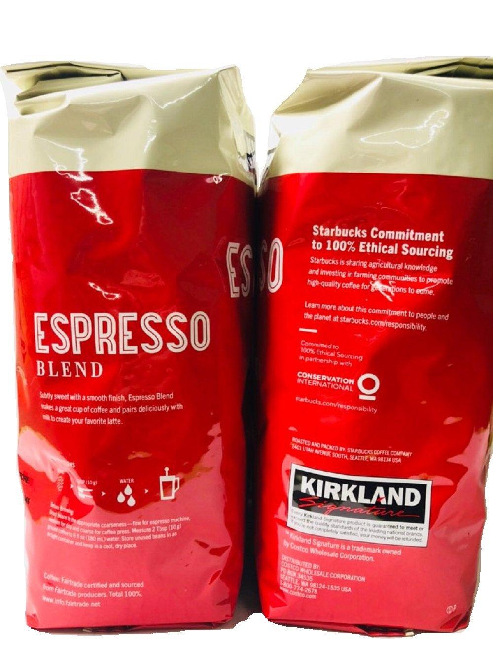 Kirkland (Pack of 2) Dark Roast ESPRESSO BLEND Coffee Roasted by Starbucks 32 Oz. Bag