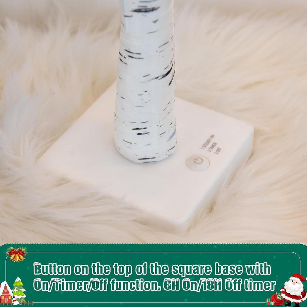 Experience the beauty of nature with its birch tree texture. 24 warm white lights create a cozy and enchanting atmosphere, bringing the charm into your home. The base also features a convenient button with 6H/18H timer, allowing you to customize the lighting duration to suit your needs.