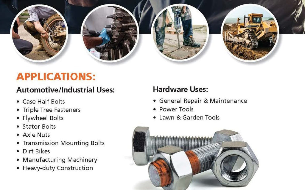 • Orange Thread locker can be removed with hand tools and does not require heating to achieve removal