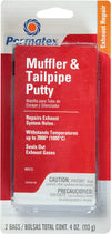 Permatex Muffler and Tailpipe Putty permanently repairs holes and leaks in exhaust systems. This two-pouch bonus pack seals out fumes at temperatures up to 2000 degrees Fahrenheit and is safe for catalytic converters. Permatex offers a range of products to repair cracks, leaks and holes on mufflers, tailpipes, catalytic converters and joints.