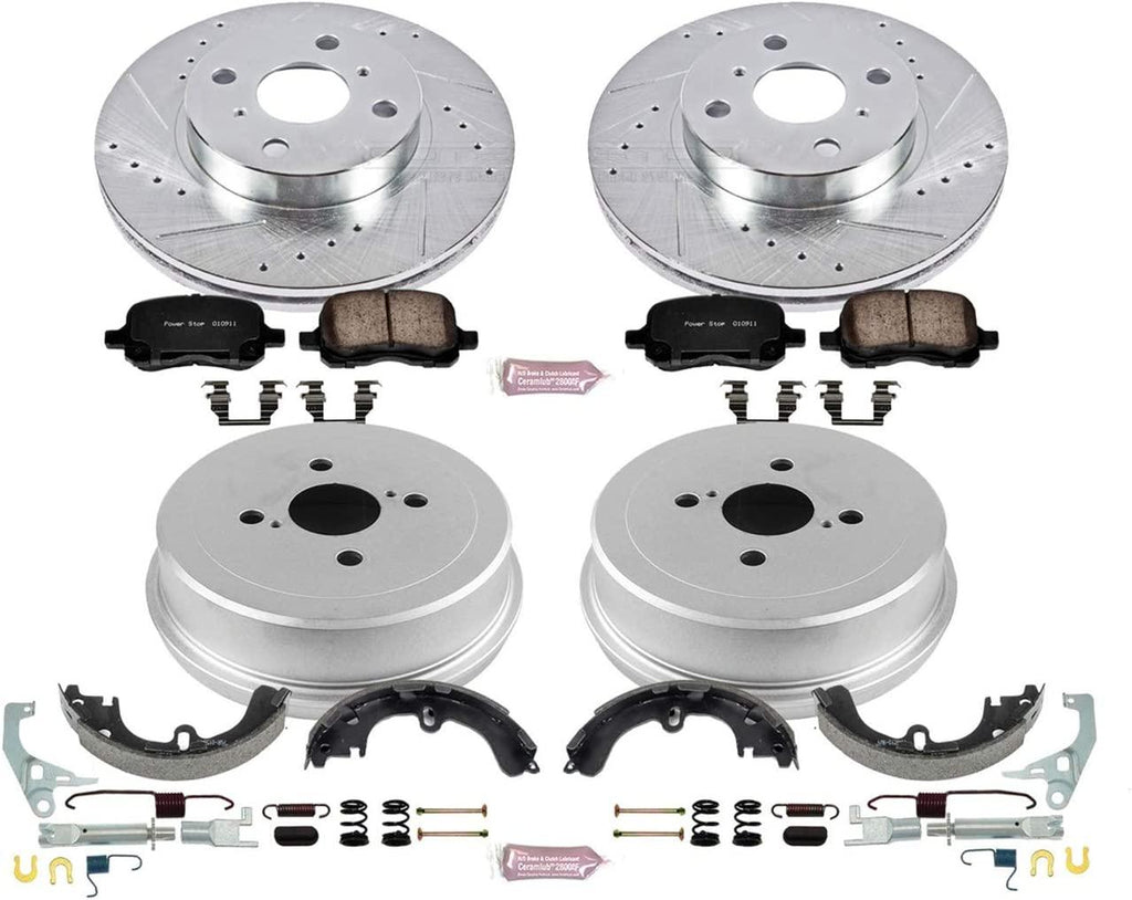 Power Stop K15197DK Front and Rear Z23 Carbon Fiber Brake Pads with Drilled & Slotted Brake Drums Kit