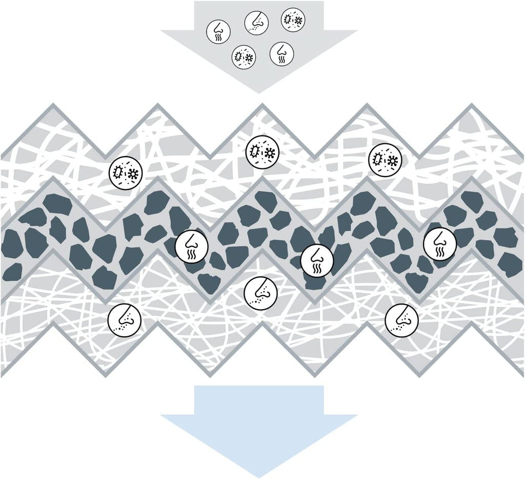 - Retains noxious gases like ozone and exhaust emissions while filtering out foul-smelling gases.
