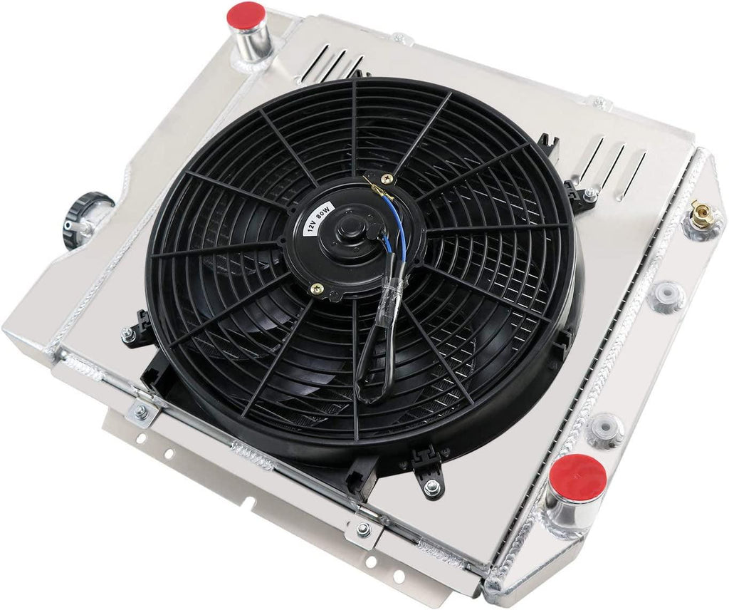 Radbuild 4 Row Aluminum Radiator for 1960-1966 Ford Falcon Mustang Comet Ranchero, for 61-65 Mercury Comet, for 65-66 Mustang V8 GAS Radiators Shroud 2 X 12" Fans Thermostat Relay Kit