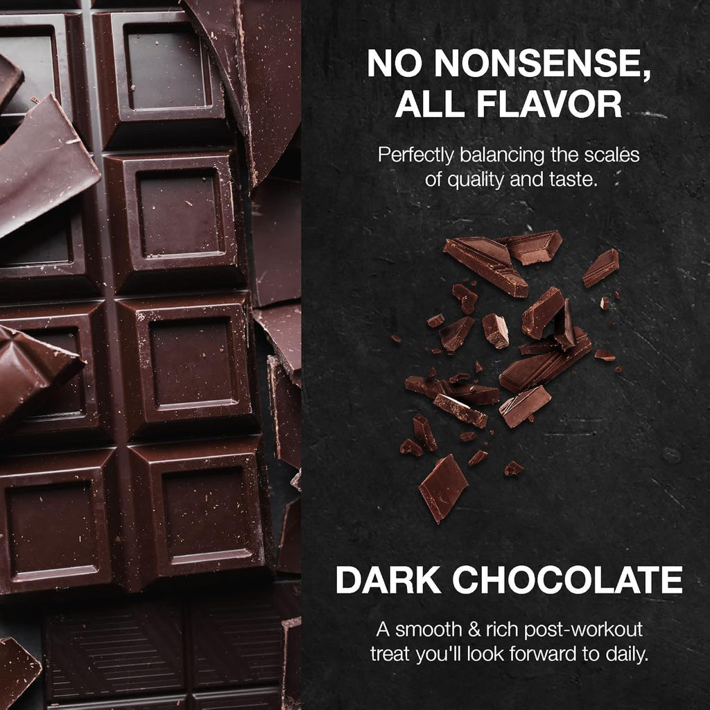• No Nonsense, All Flavor: We pride ourselves on creating products that perfectly balance the scales of quality and flavor. Indulge in our decadent Dark Chocolate flavor for a smooth and rich post workout treat you'll look forward to daily.
