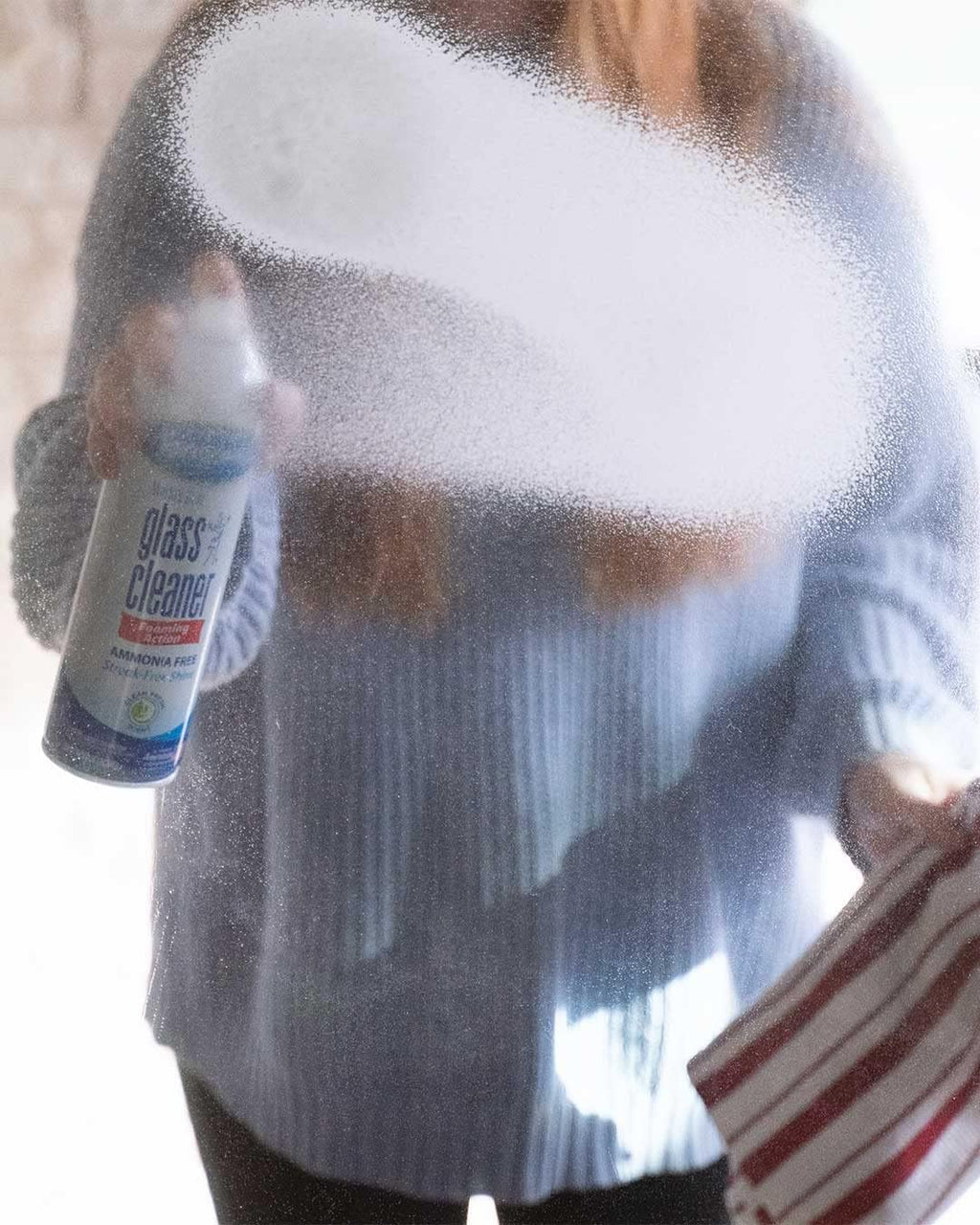 For cleaning and polishing glass, mirrors, windshields and windows. This easy-to use, fast acting product uses a clinging foam to break up soils and hold them - even on vertical surfaces. There is no dripping, no running and no streaking. With an exclusive formulation using denatured alcohol and no ammonia, this product cleans thoroughly, dries quickly, requires no rinsing and leaves a pleasant, fresh aroma. USES: Spray on and wipe off to remove fingerprints, dust, dirt, lipstick, smoke film and other common soils from: windows, mirrors, windshields, glass.